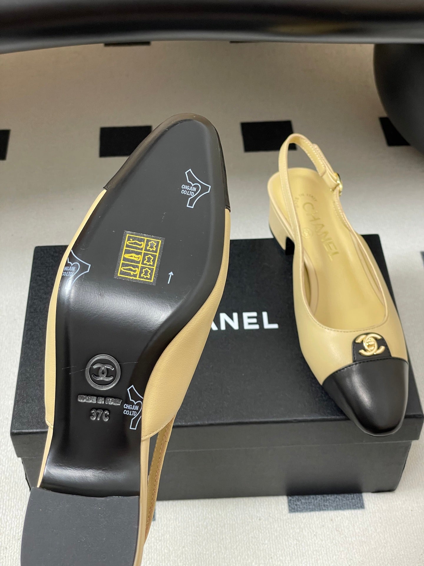 Chanel 25 Slingback 30mm Beige Black Lambskin 473213