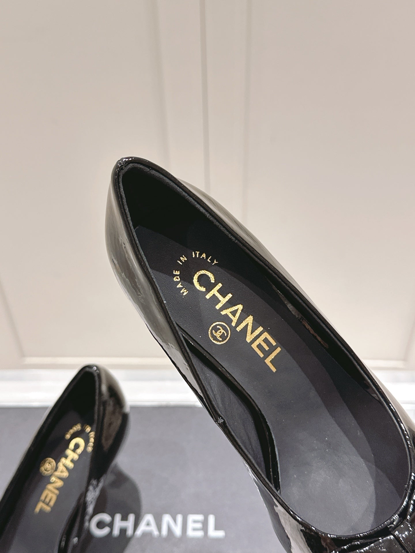 Chanel 25A Heel Pump Black Patent Calfskin 393069