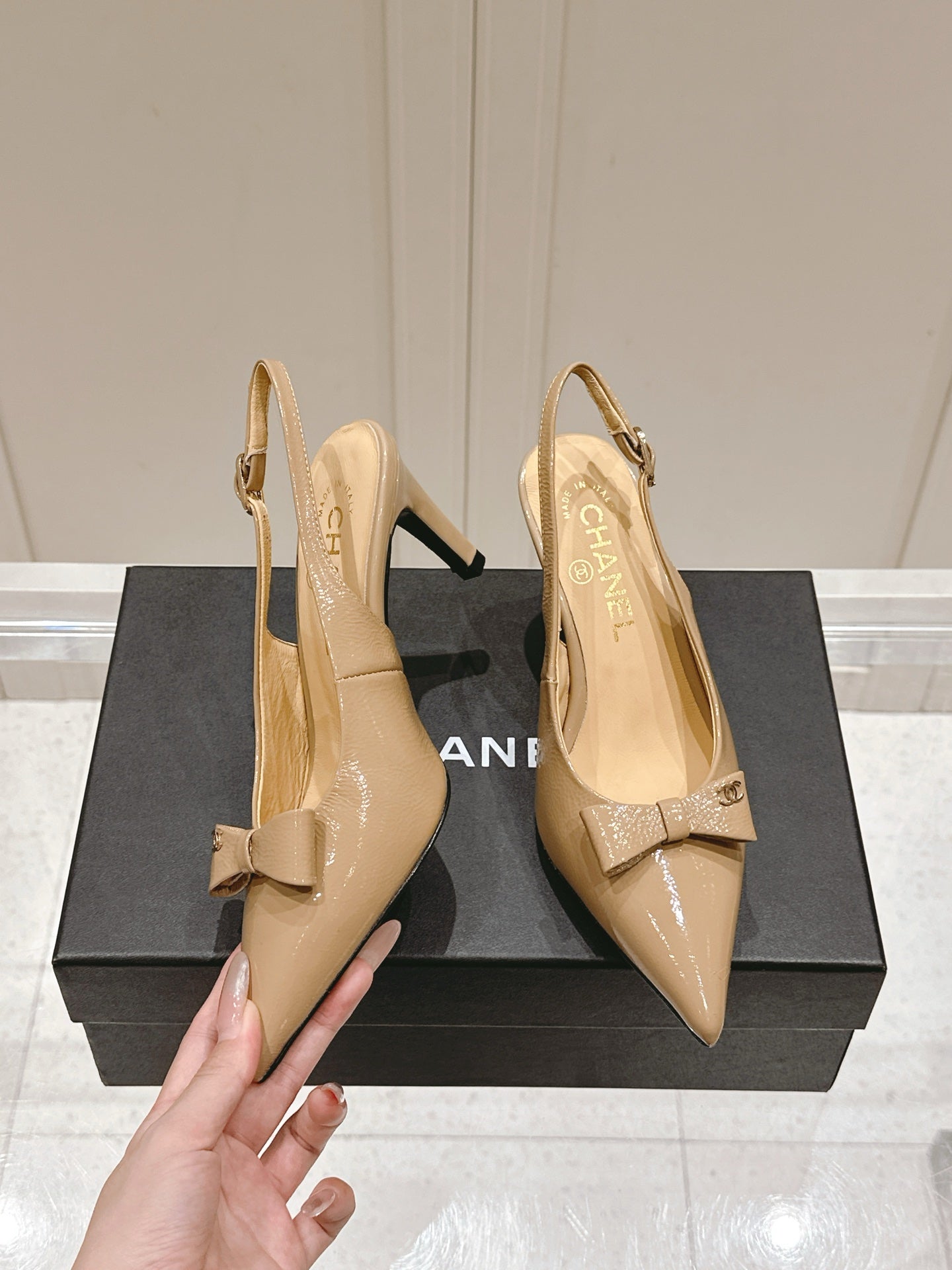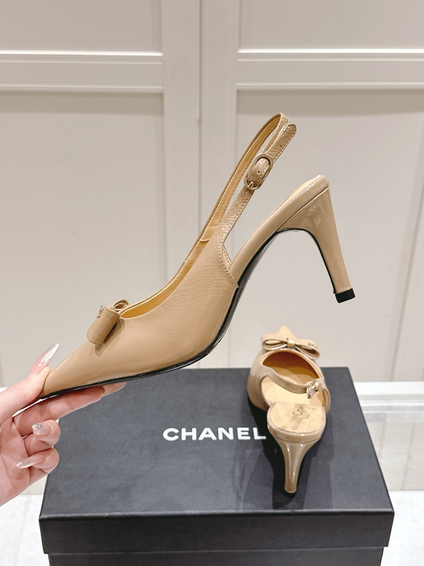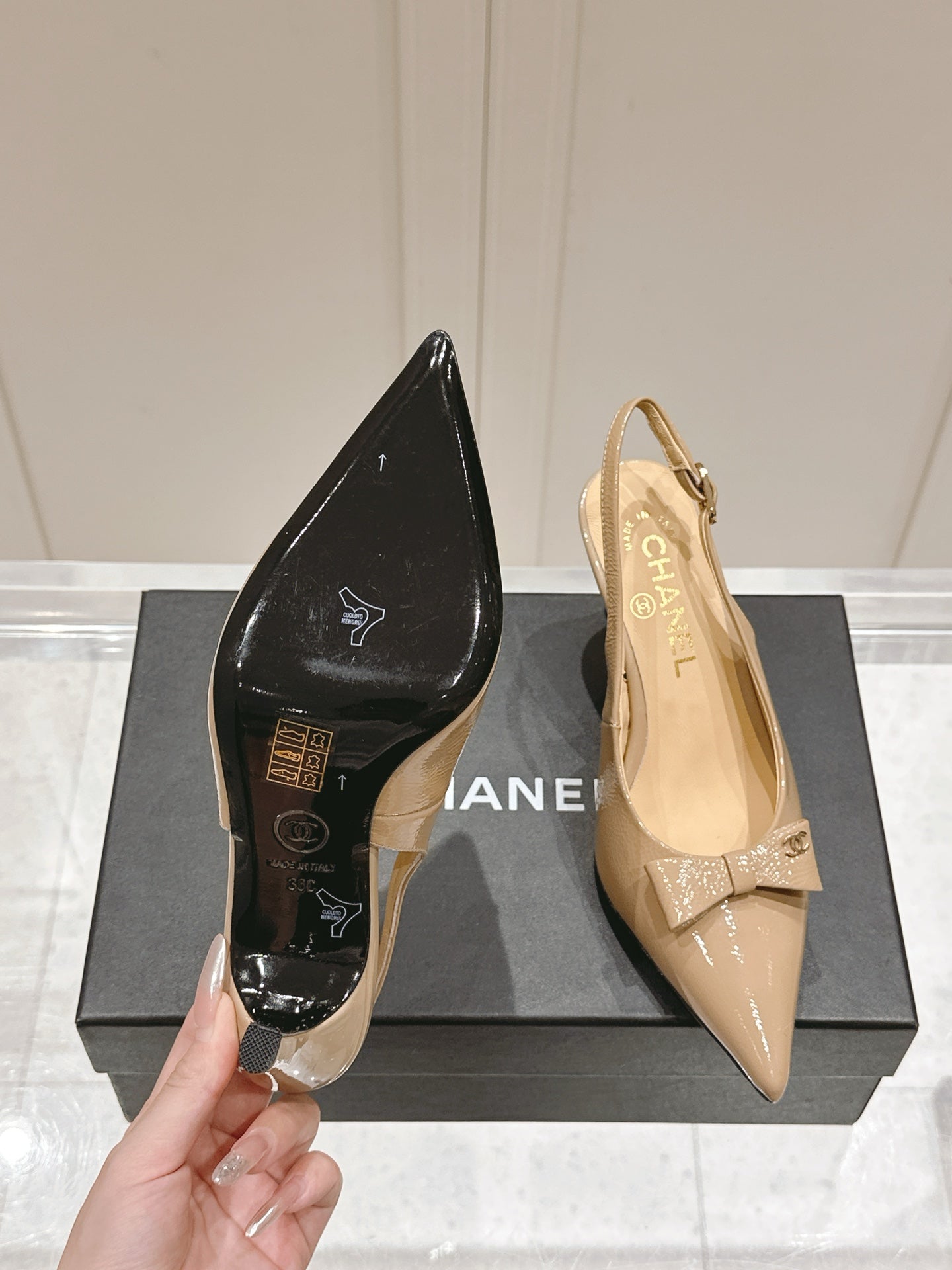 Chanel 25A Slingback Nude Patent Calfskin 393071
