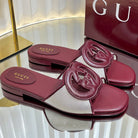 GC 25 Interlocking G Slide Sandal Rosso Ancora Red Canvas Cowhide 294644