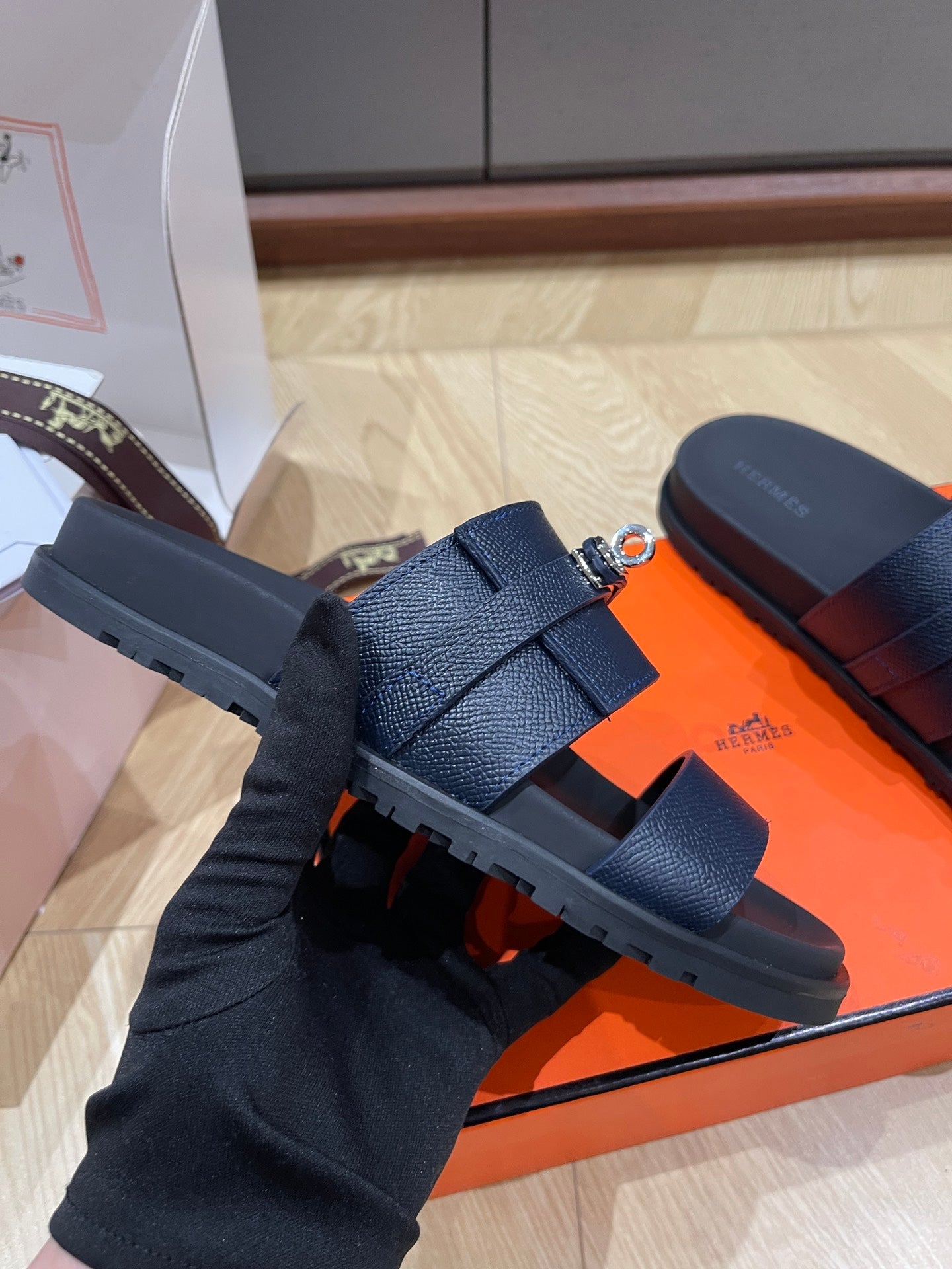 HM 25 Jackson Sandal Dark Blue Grained Calfskin