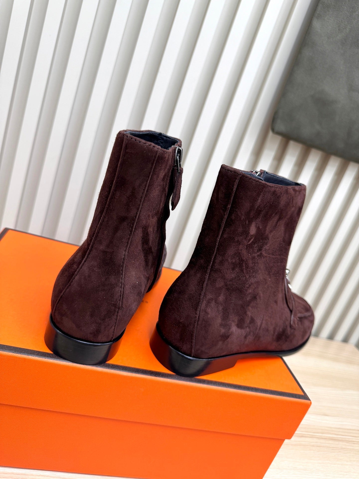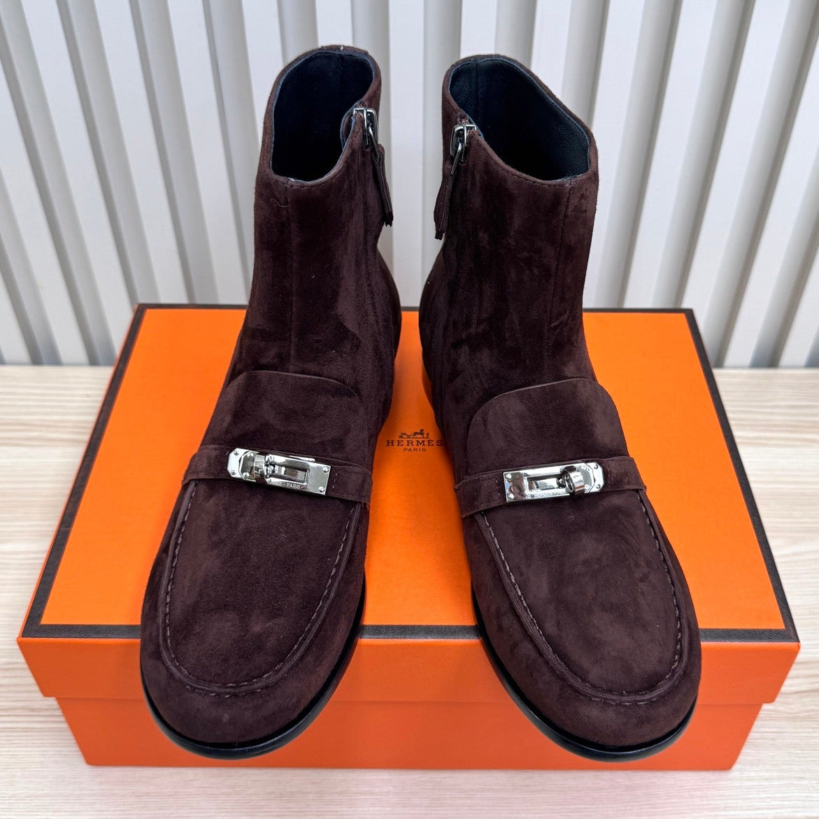 HM 25 Kelly Buckle Ankle Boots Dark Brown Silver Suede 513081
