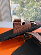 HM Chypre Sandal Walnut Brown Ostrich Leather 202803