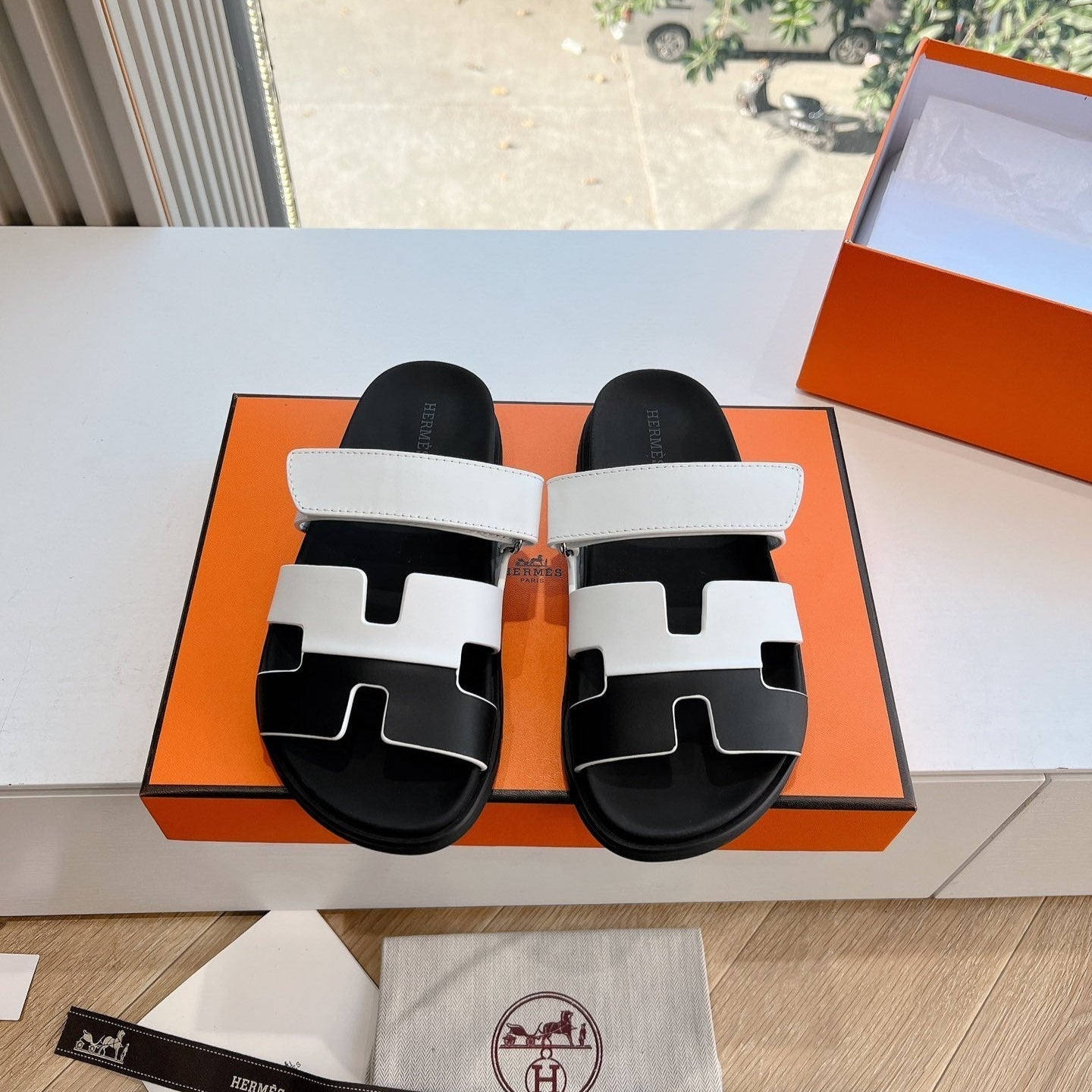 HM Chypre Sandal White mix Black Calfskin 202816