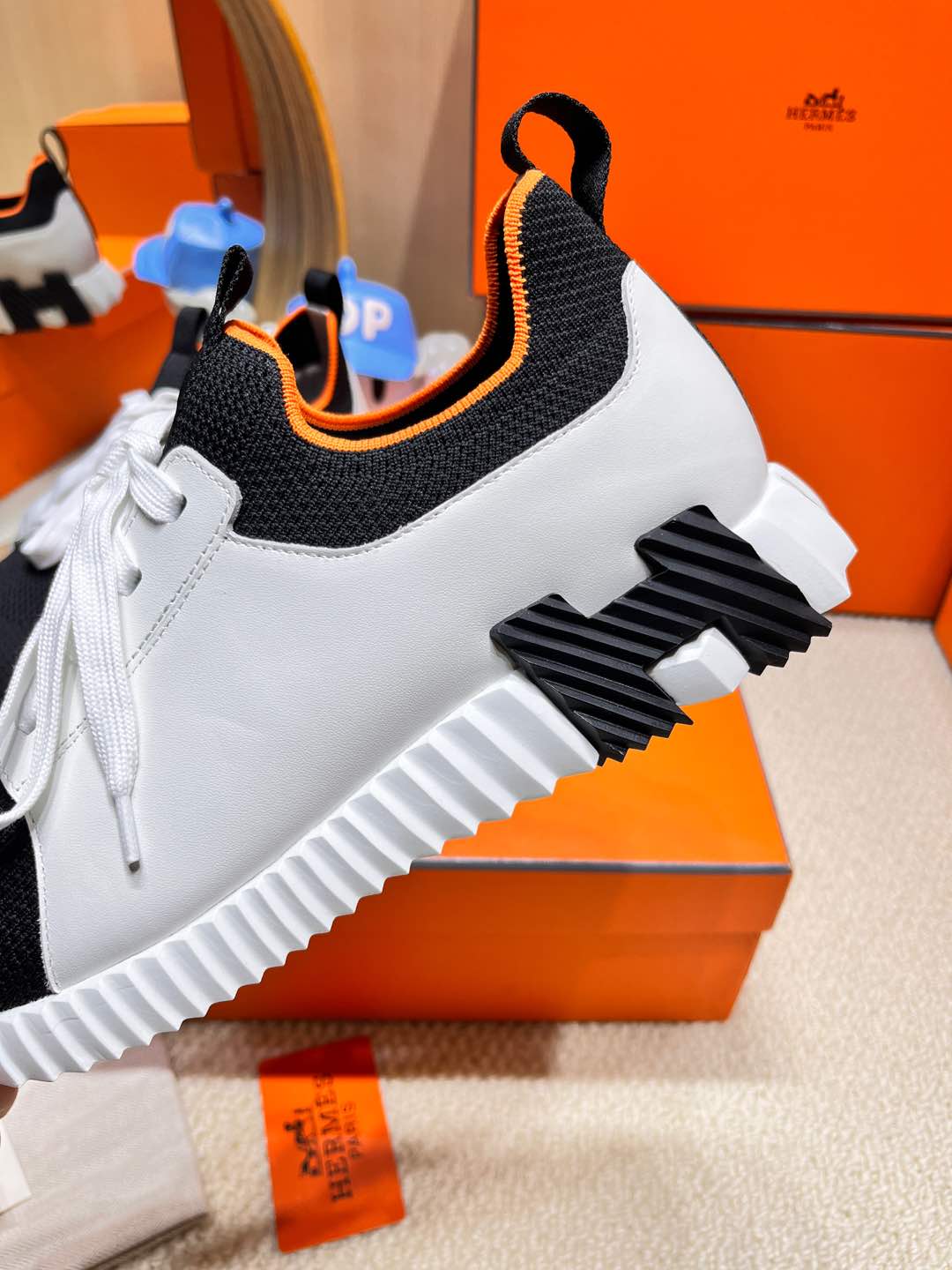 HM Depart slip-on Sneaker White and Black Knitted fabric and Calfskin 206329