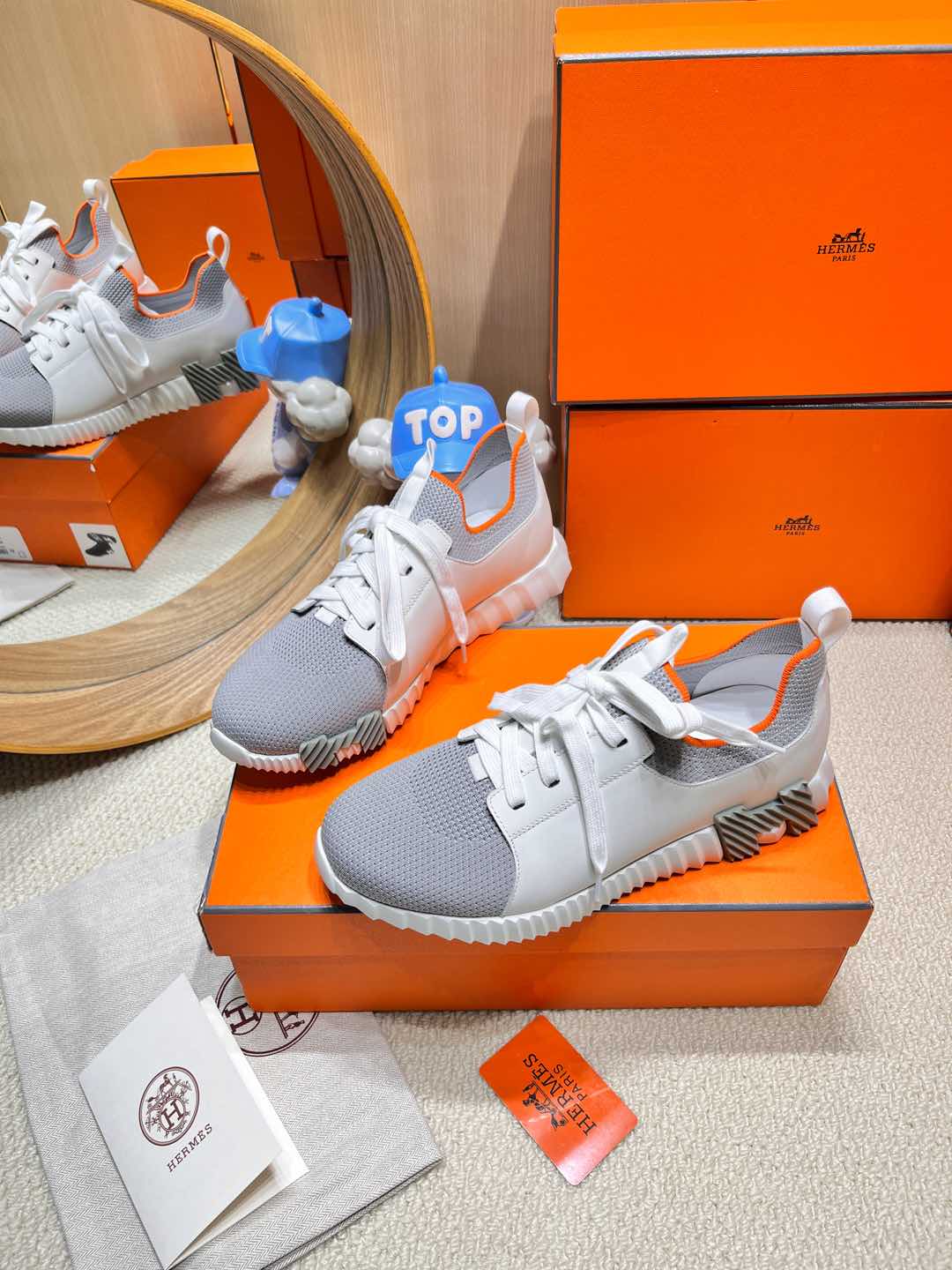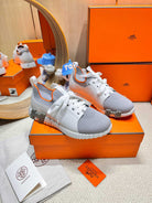 HM Depart slip-on Sneaker White mix Grey Knitted fabric and Calfskin 206334
