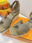 - Material: Cowhide, wedged rope heel