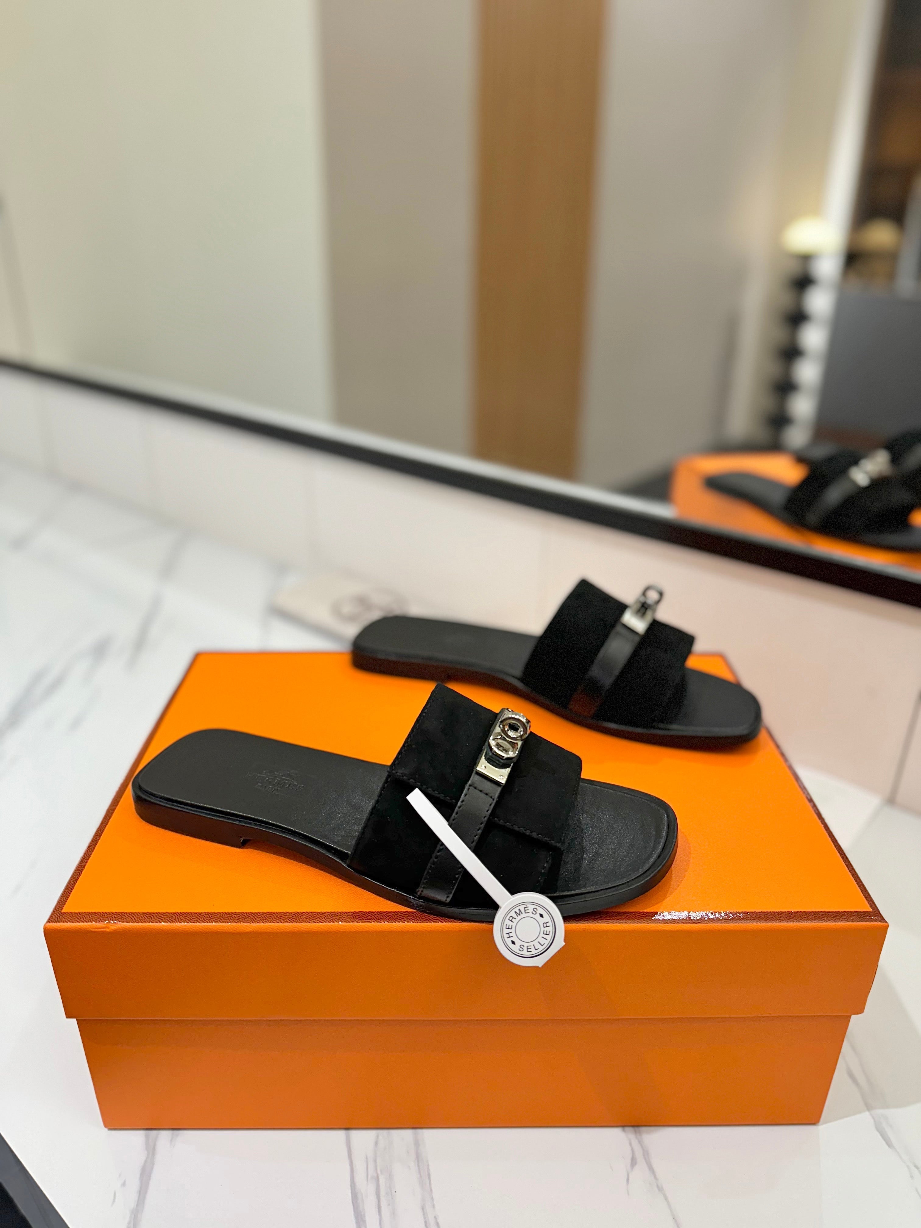 HM Giulia Sandal Black Suede and Calfskin 254585