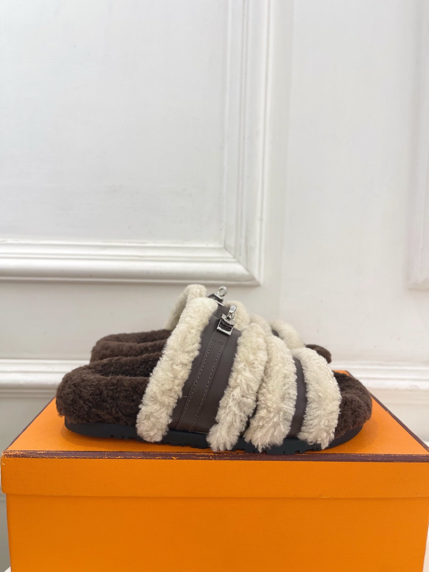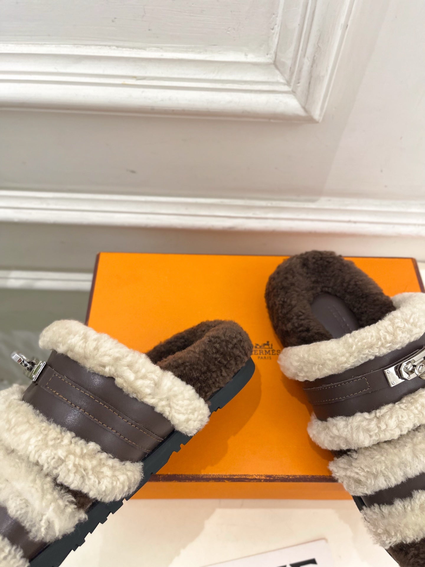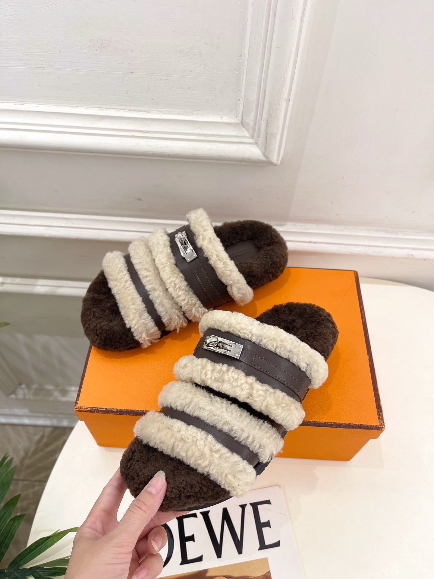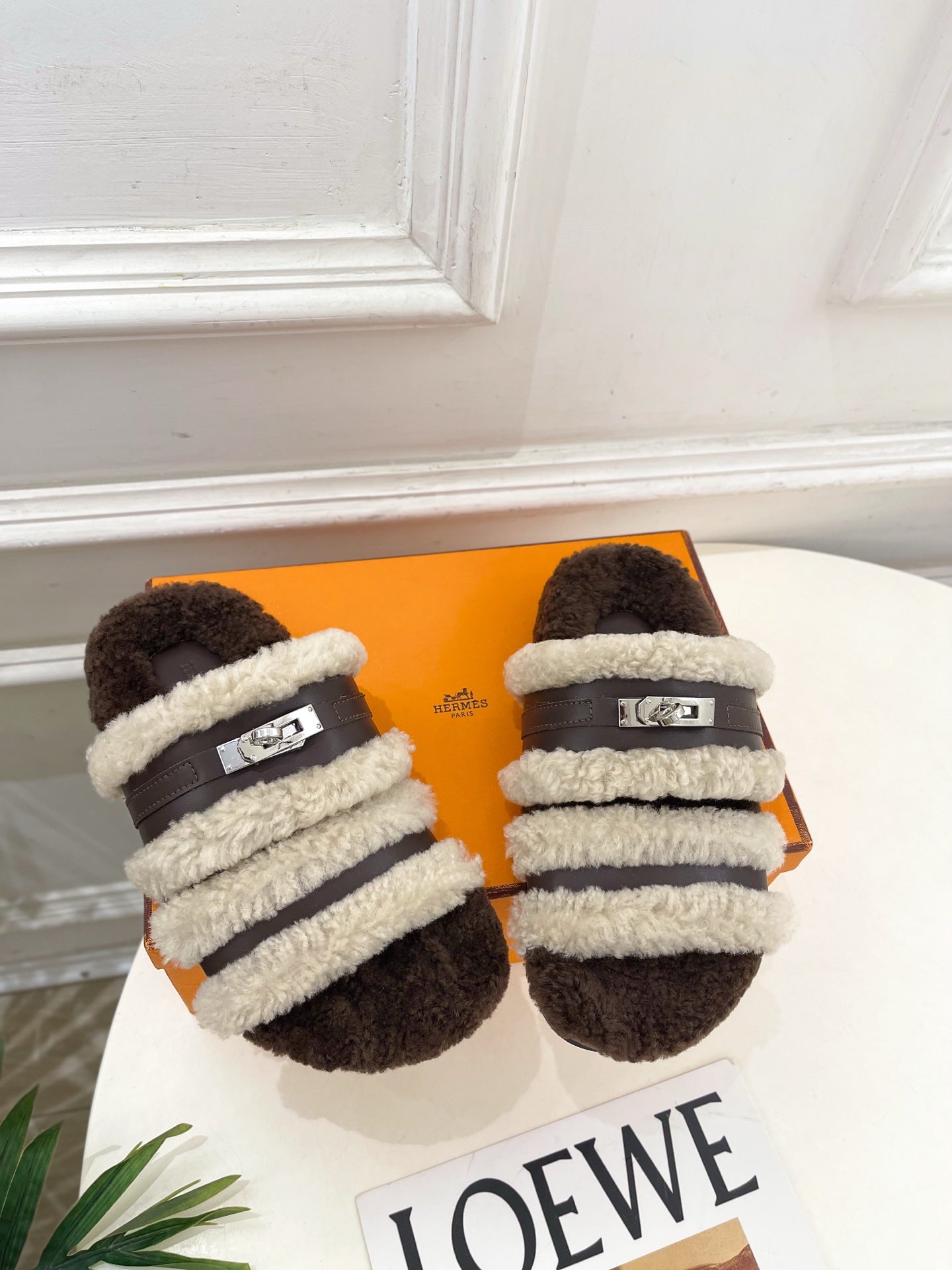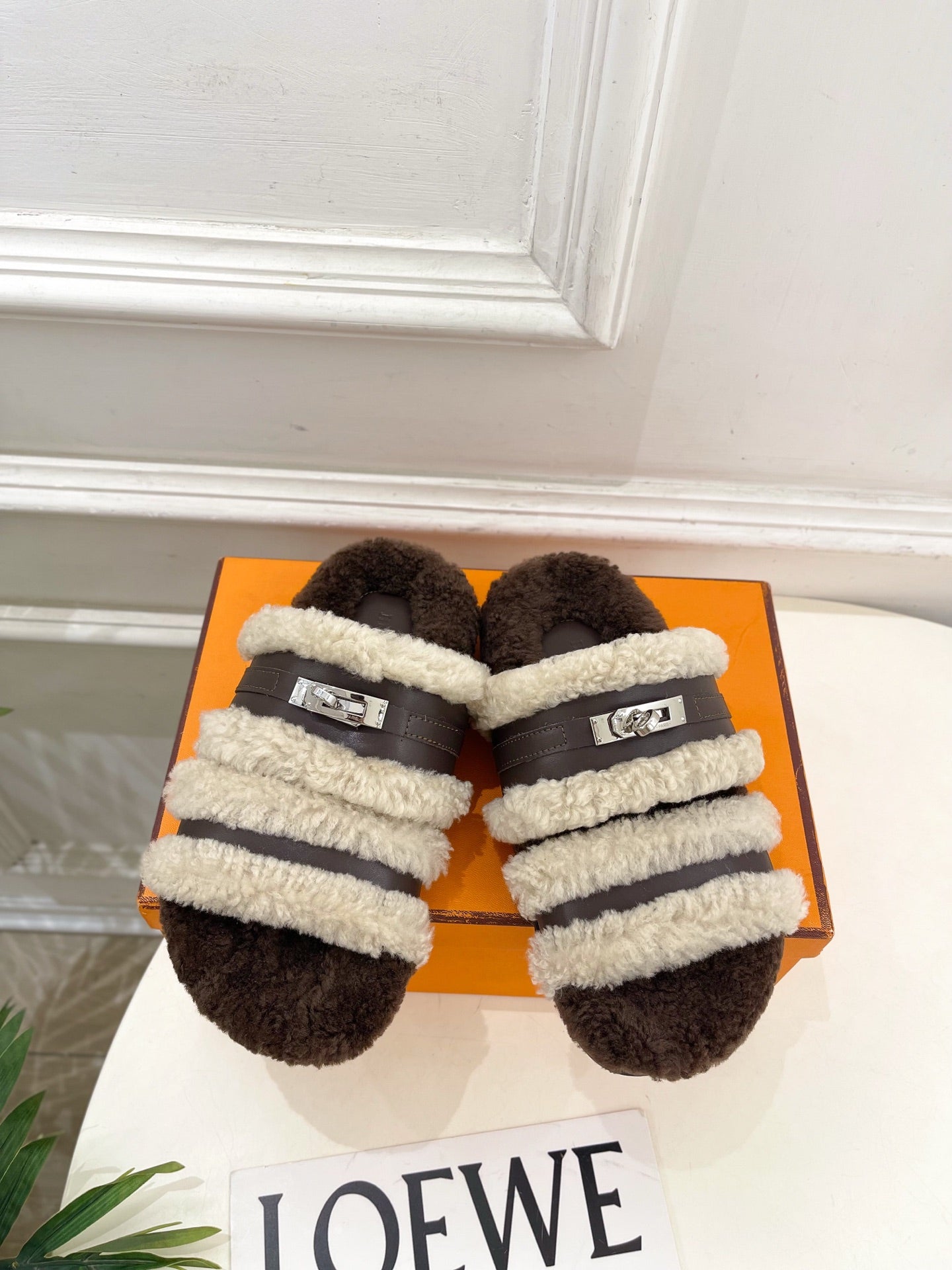 HM Slippers Classic Kelly Sliver Buckle Brown Wool 479616