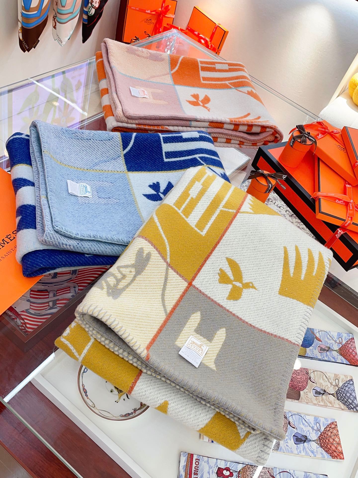 Baby Blankets 140 CM In Dark Blue Mix Light Blue Cashmere And Fine Wool 341415