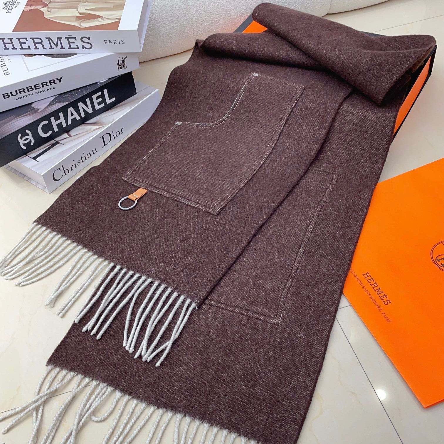 Cargo muffler Scarf 190 CM Dark Brown Wool 375382