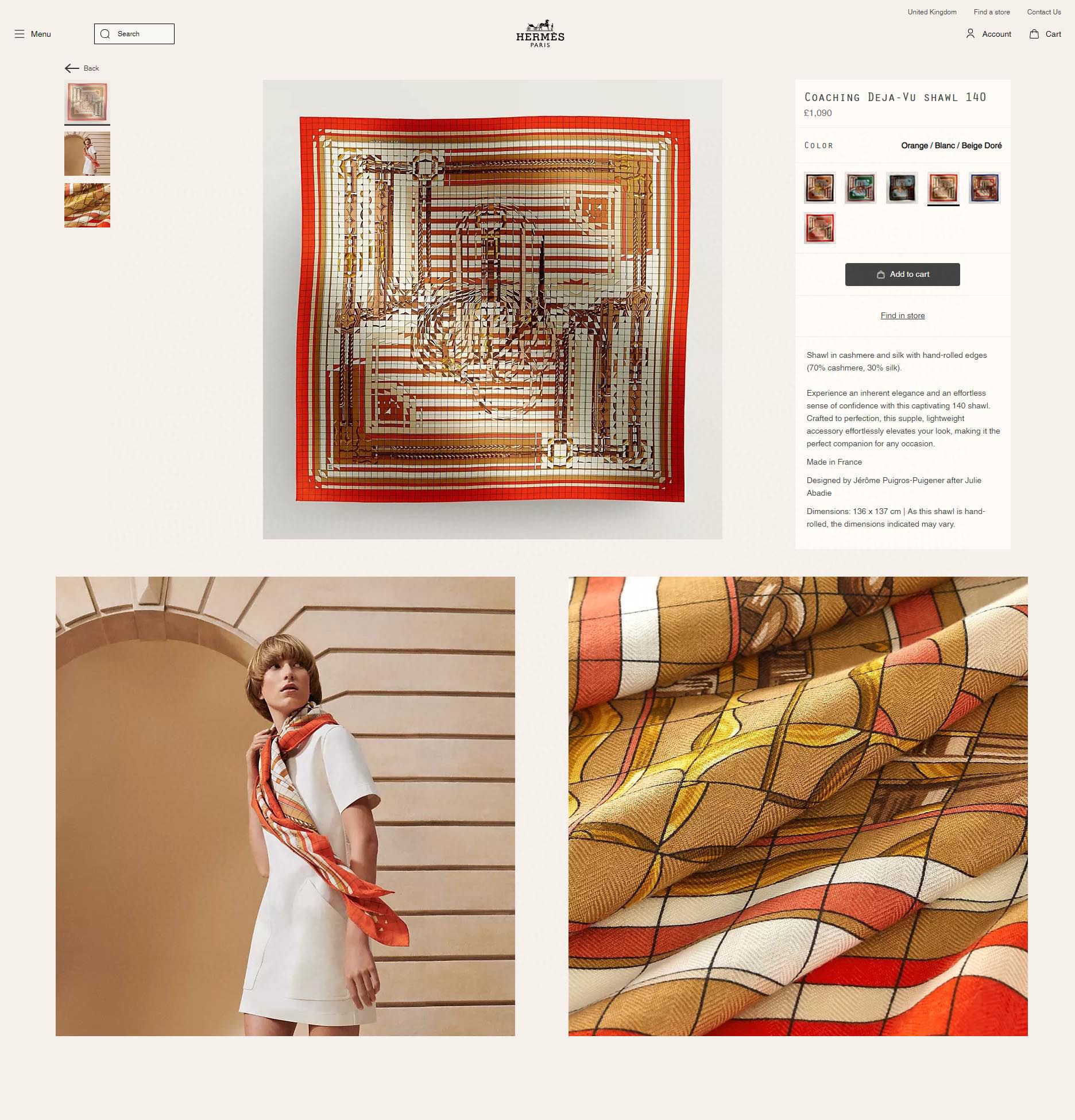 Coaching Deja-Vu Shawl 140 CM Orange Colorful Cashmere And Silk 398263