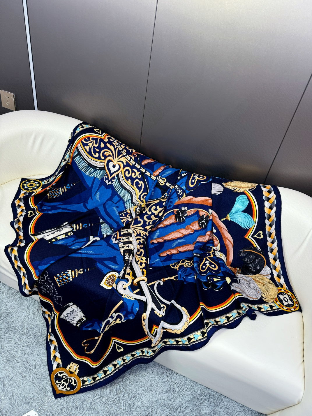Harnais De Coeur Scarf 135 CM In Black Colorful Cashmere And Silk 381095
