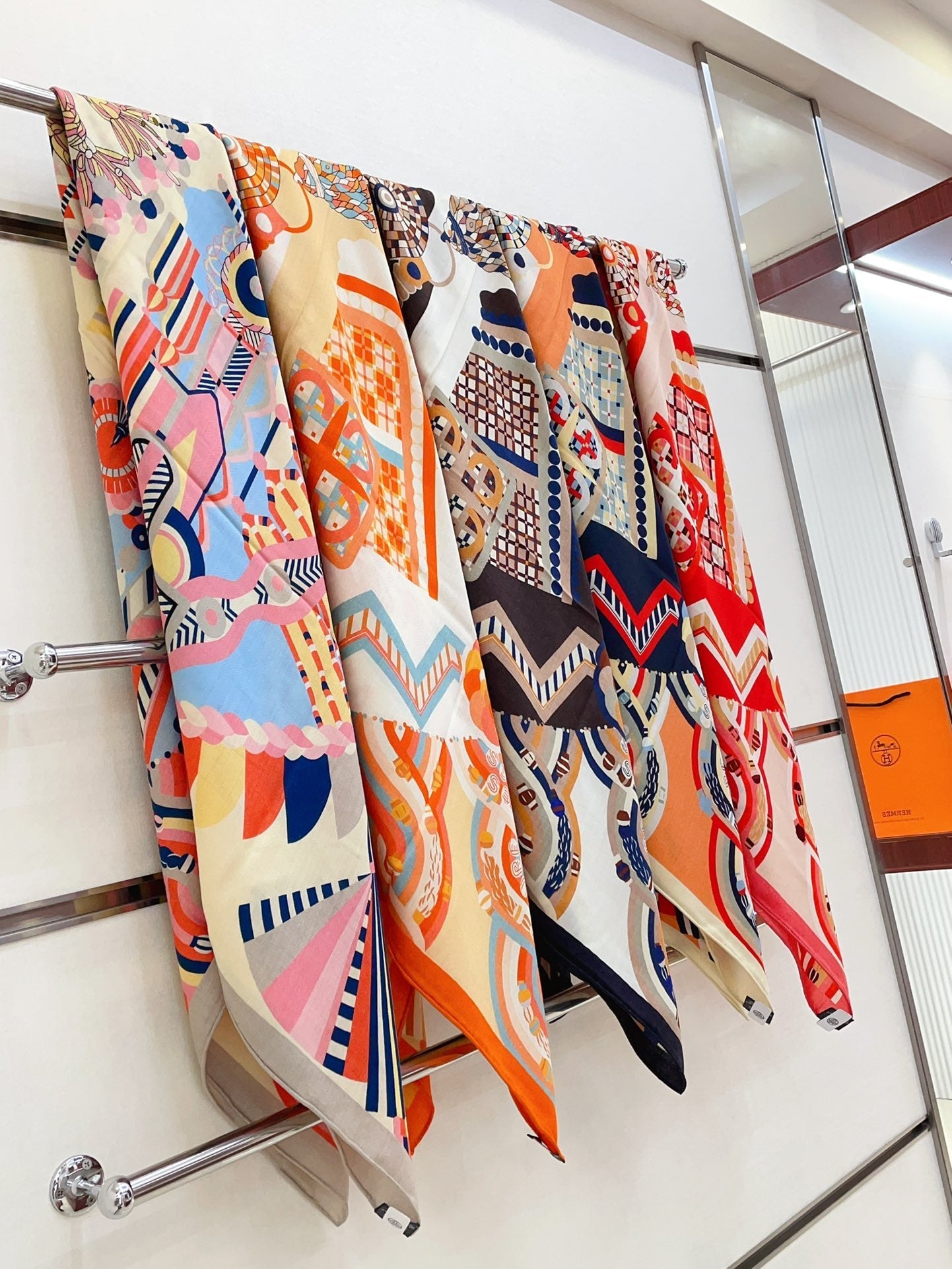 Haute Parure Scarf 135 CM In Orange Colorful Cashmere And Silk 324754