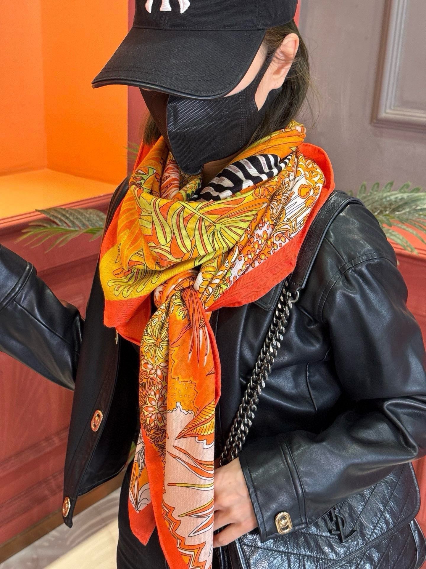 Mountain Zebra Scarf 185 CM Yellow Colorful Silk 402279