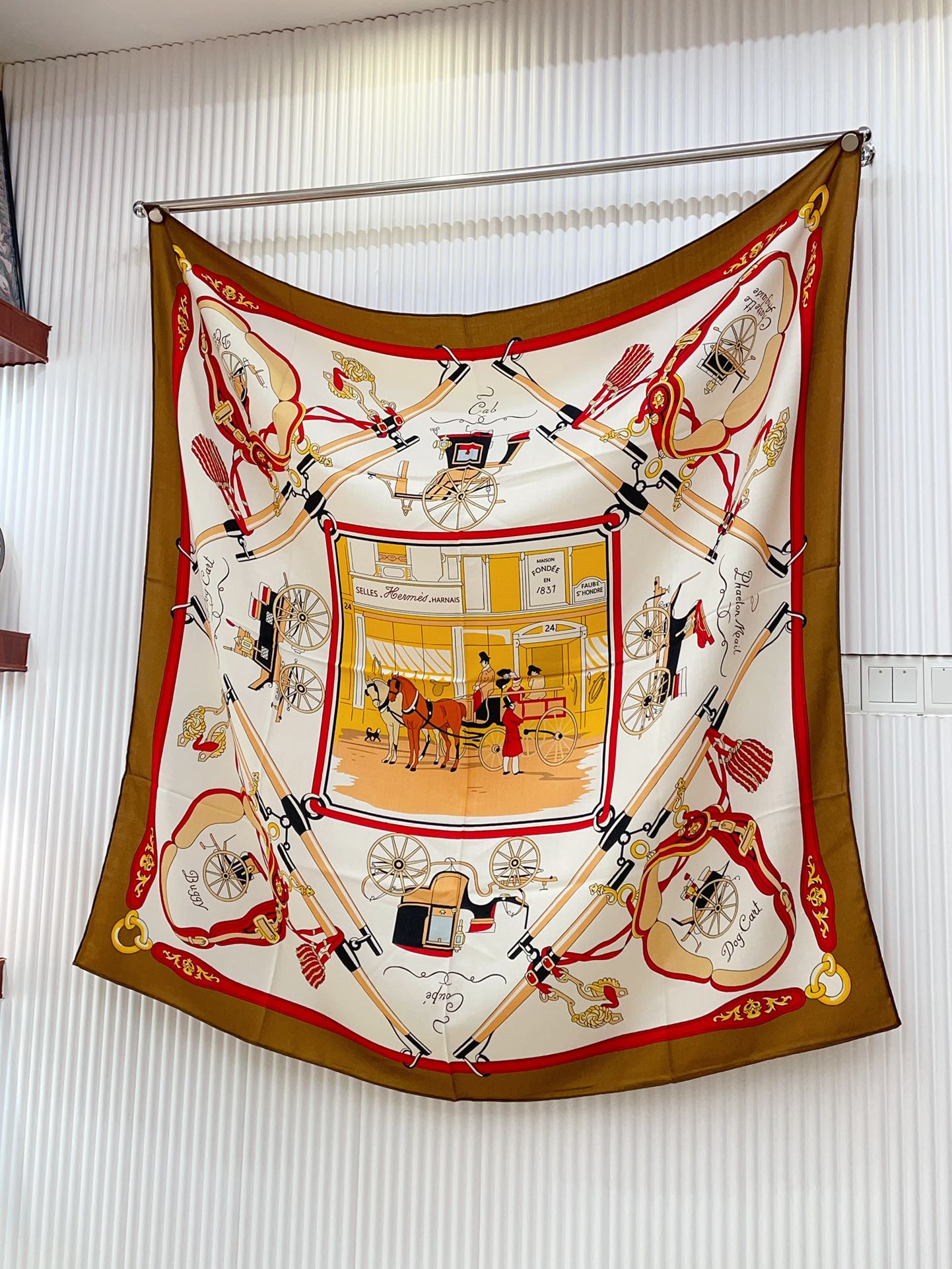 Palonniers Scarf 135 CM In Brown Colorful Cashmere And Silk 327474