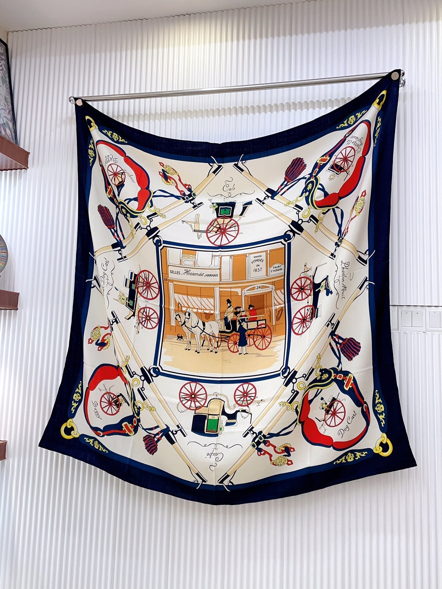 Palonniers Scarf 135 CM In Navy Blue Colorful Cashmere And Silk 327473