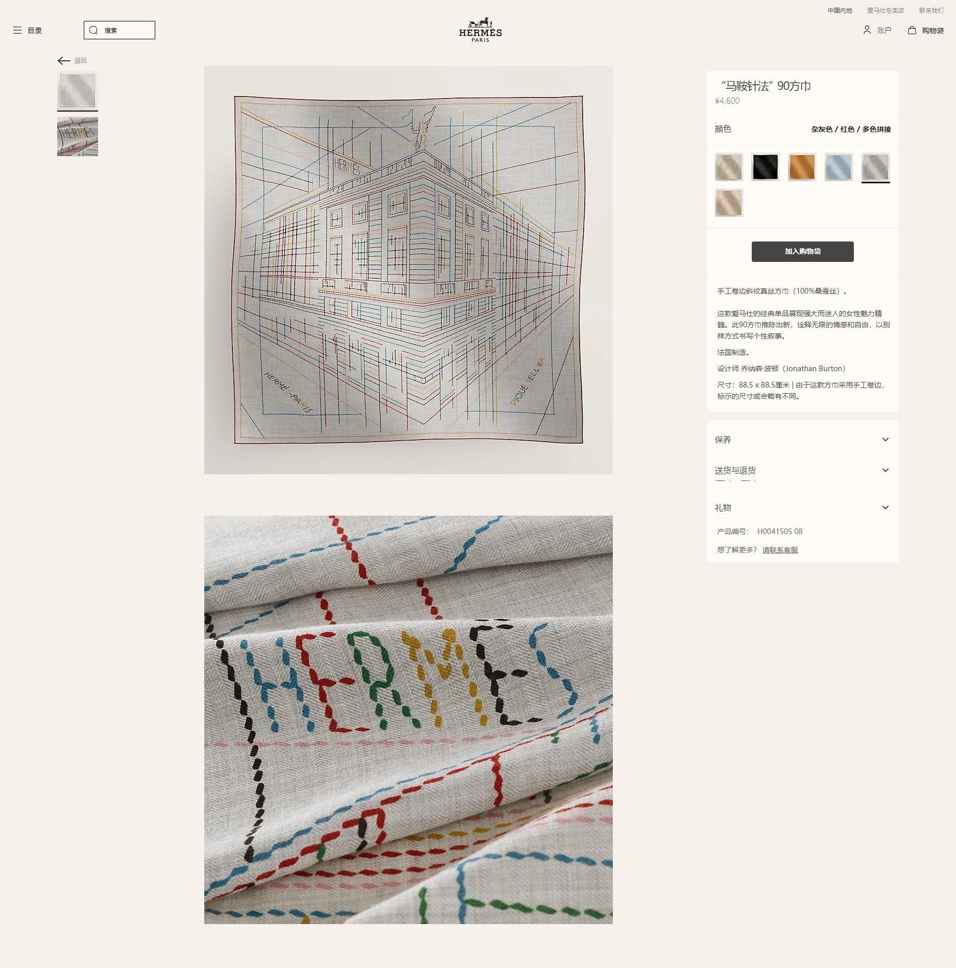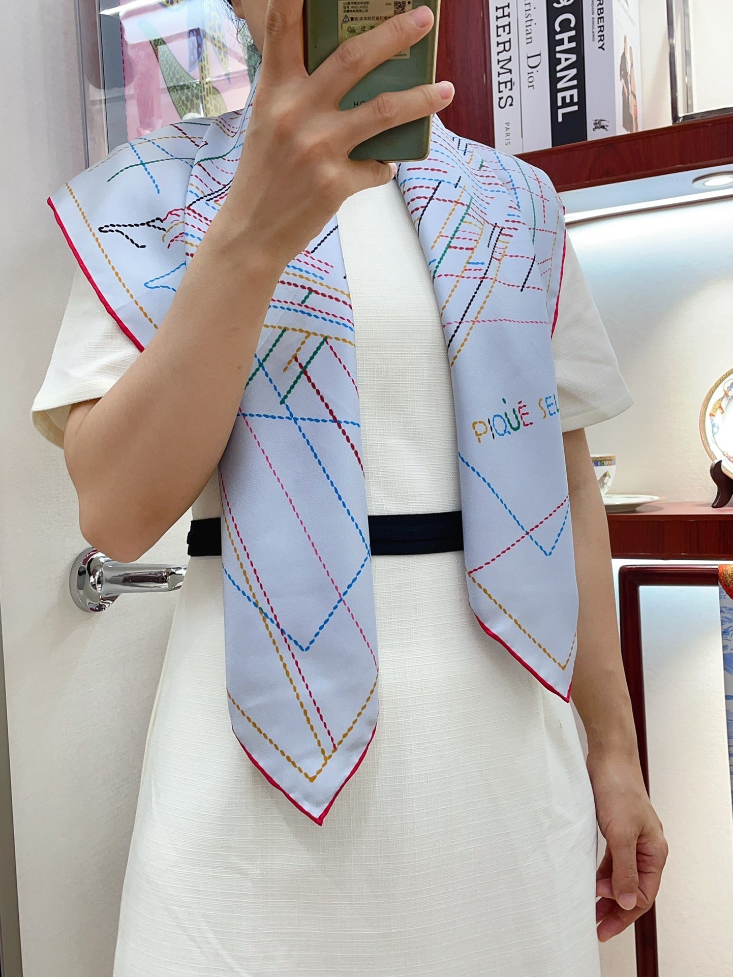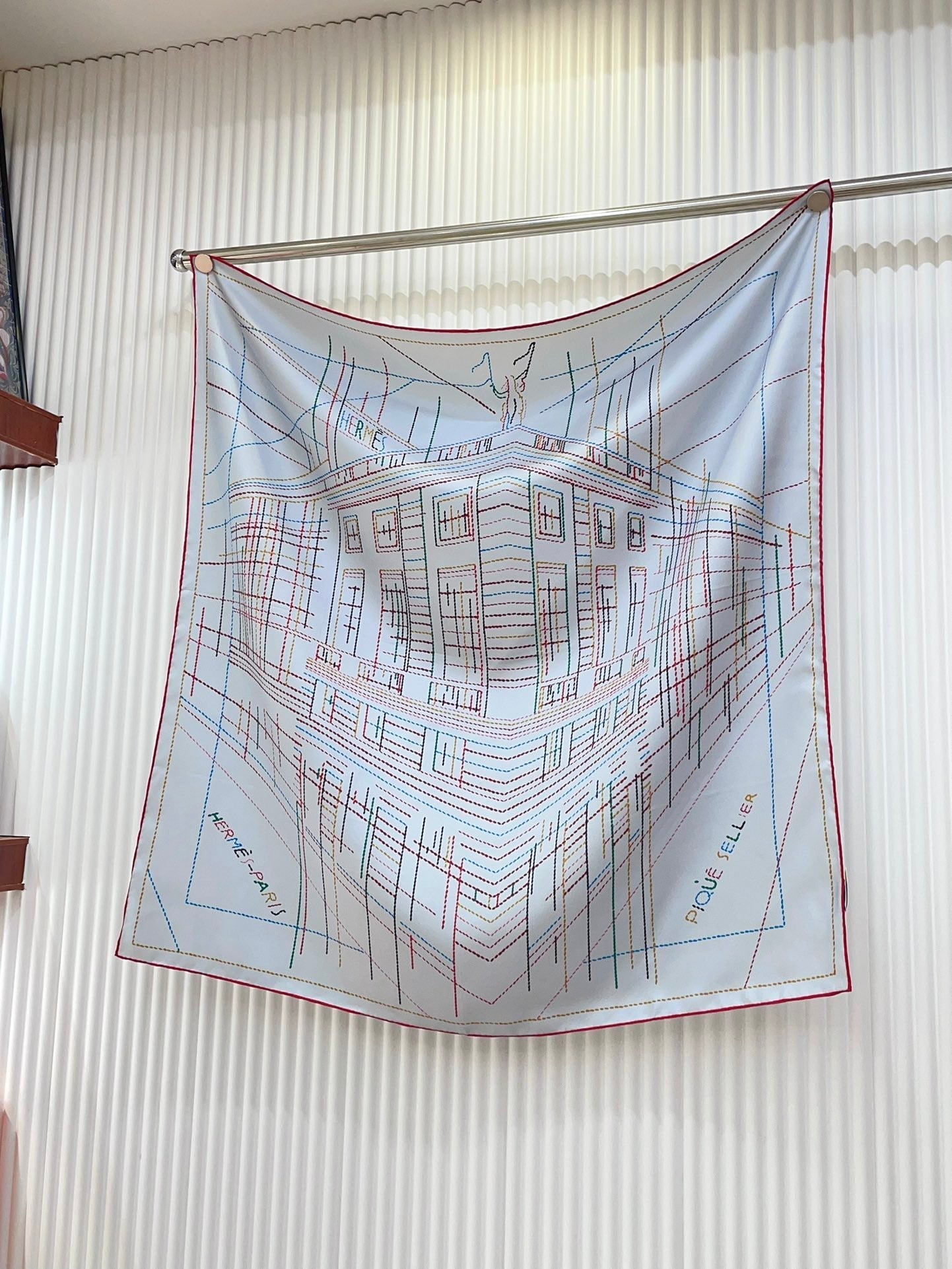 Pique Sellier Shawl 90 CM In Grey White Colorful Silk Twill 312869