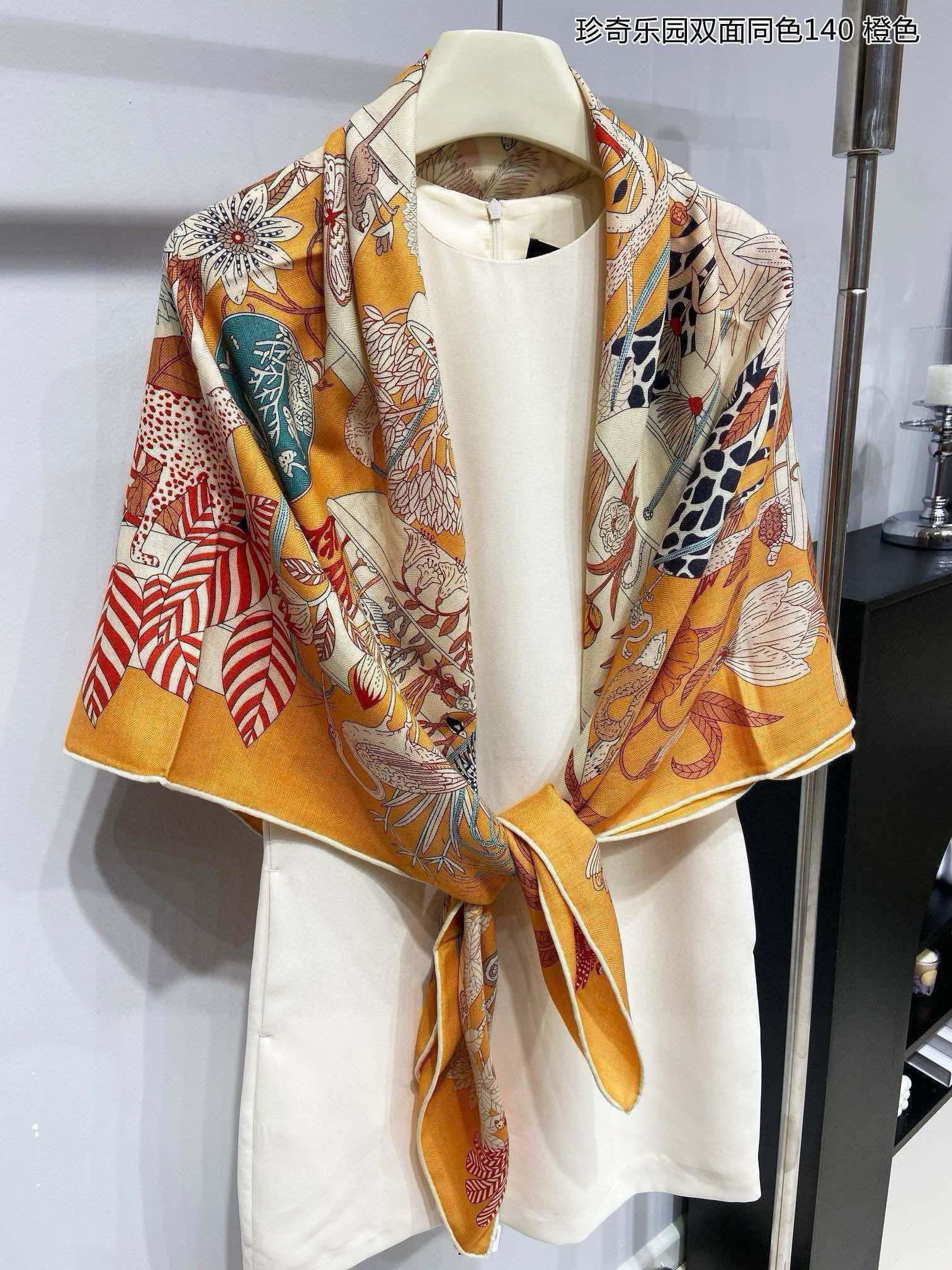 Precious Paradise Scarf 140 CM Yellow Orange Colorful Cashmere And Silk