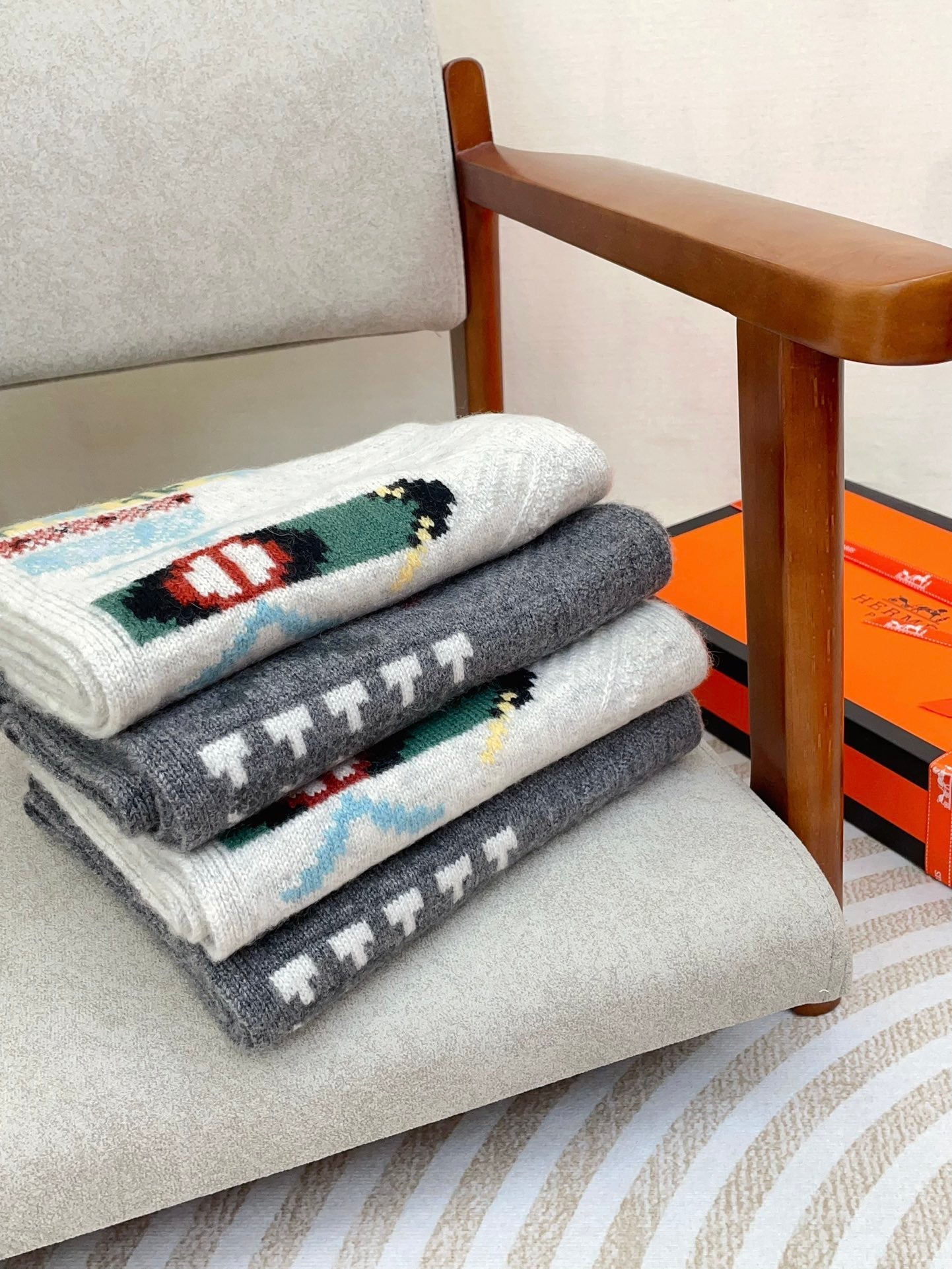 Scarf 120 CM In Grey Black Hand Woven Cashmere 401167