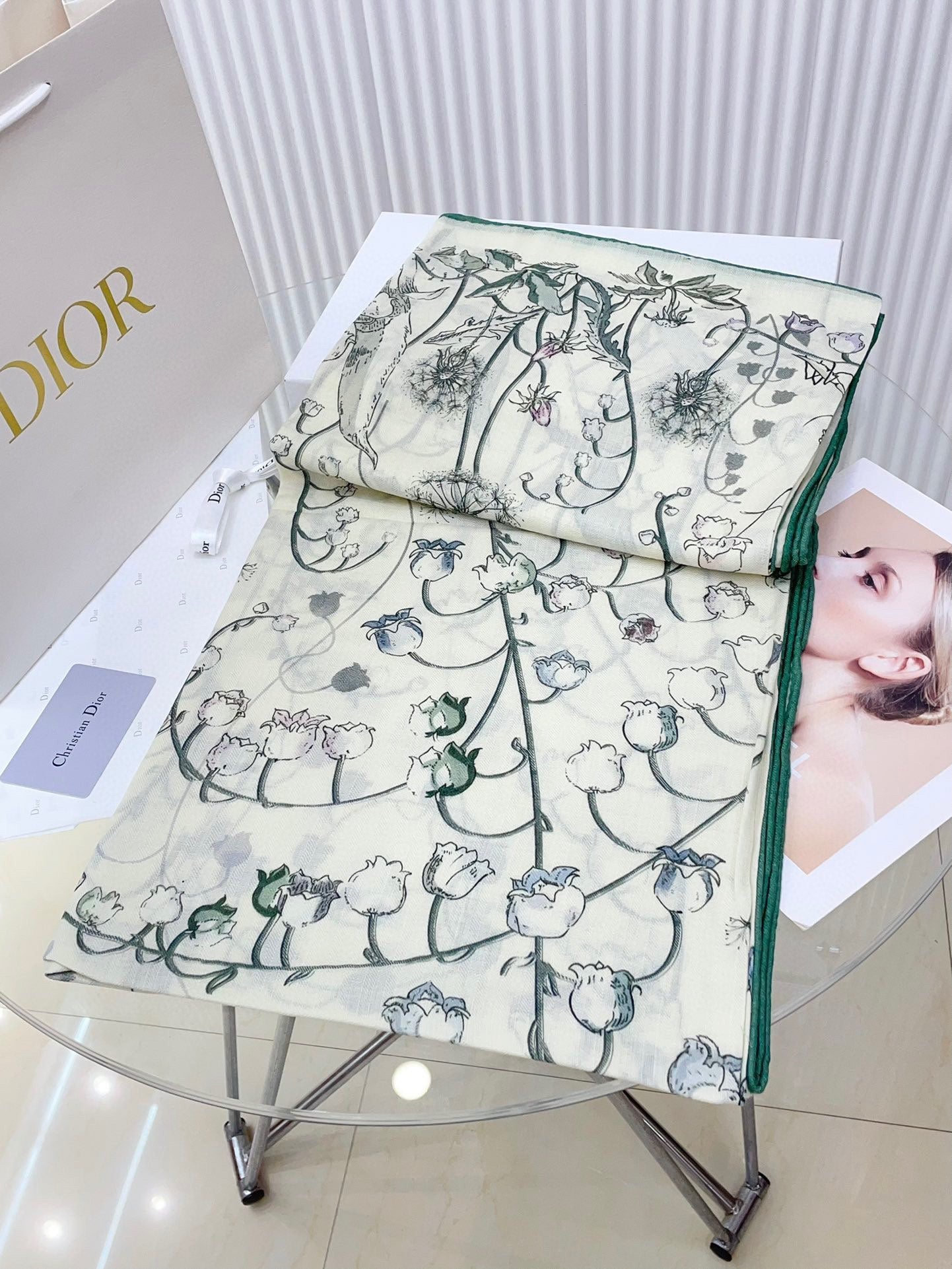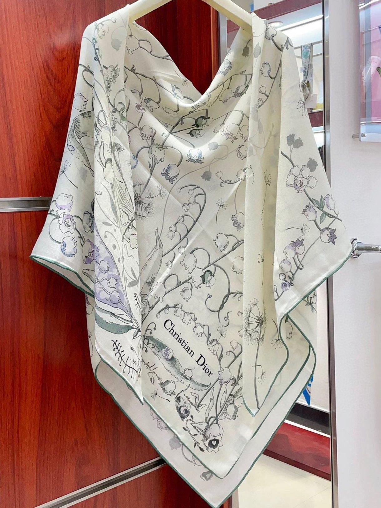 SCARF 140 CM IN WHITE MIX TEAL GREEN CASHMERE AND SILK 376423