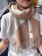 SCARF 150 CM IN LIGHT BROWN MIX WHITE CASHMERE