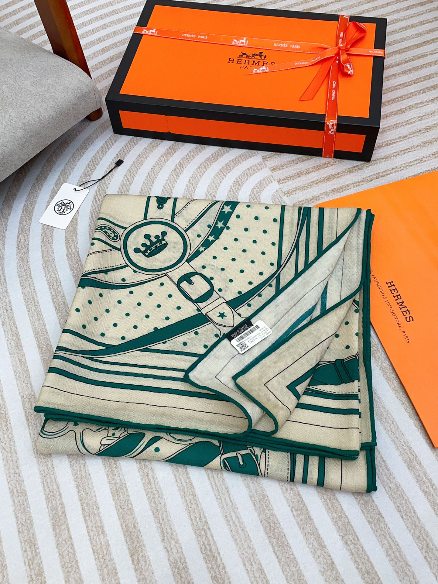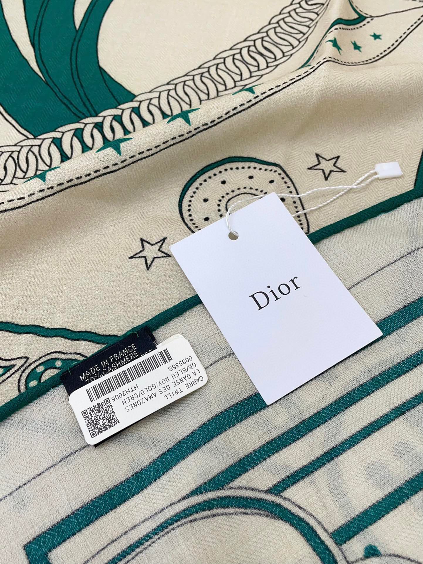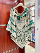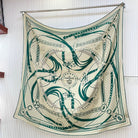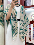 Square Scarf 140CM White Mix Dark Green Cashmere And Silk
