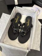 CC 25 Flower Thong Slippers Black Cowhide 233414