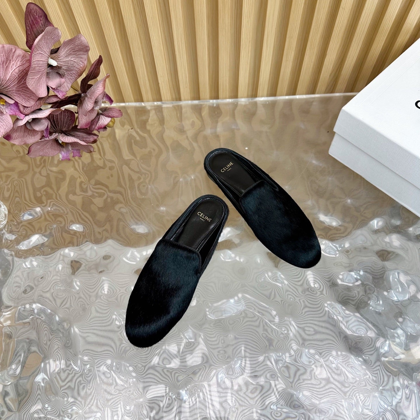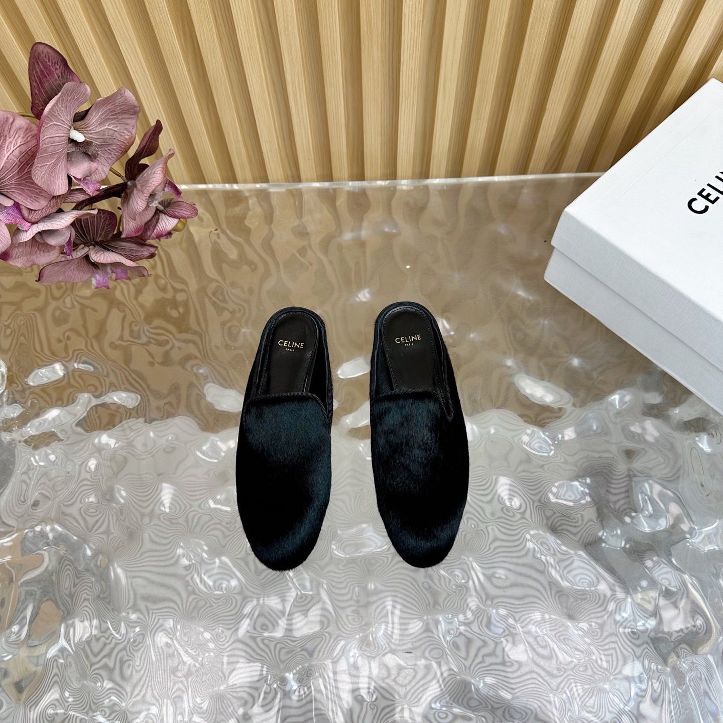 CELINE 25 Slippers Black Velvet 285912
