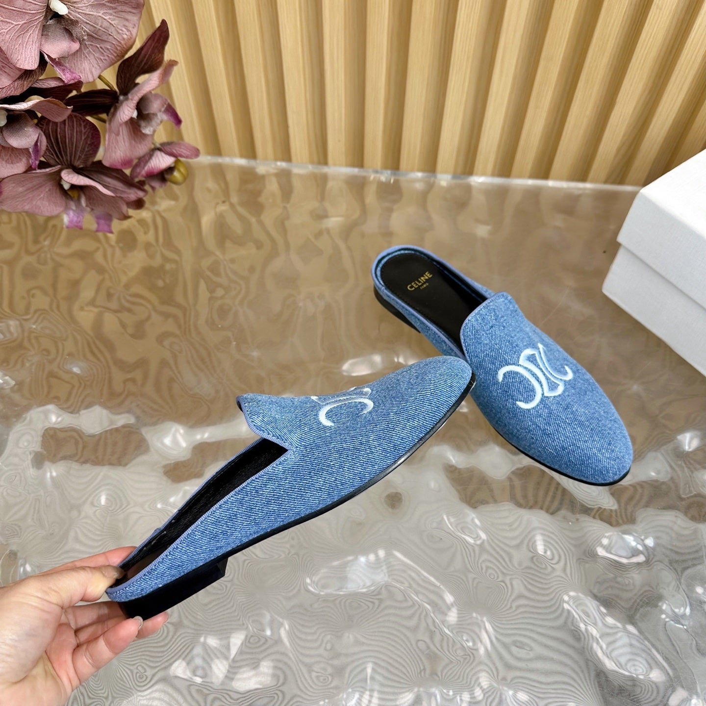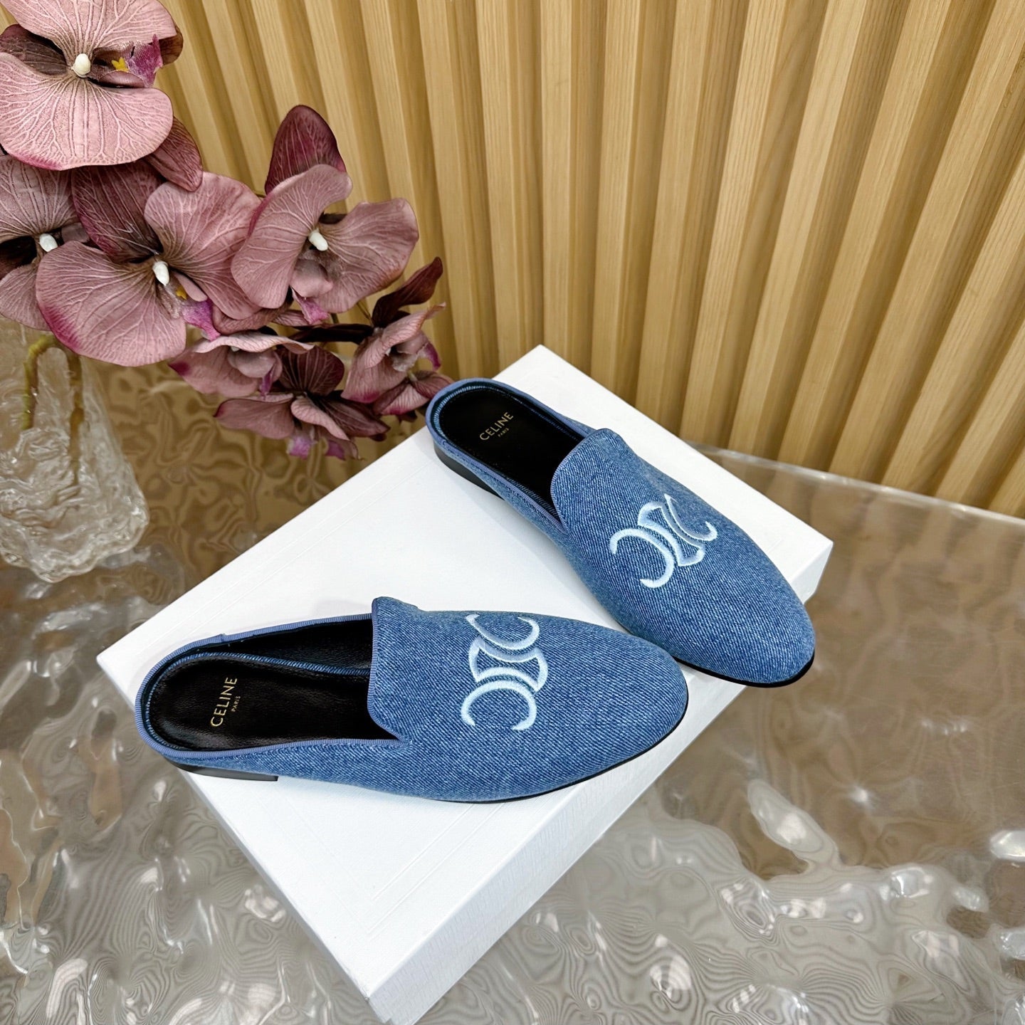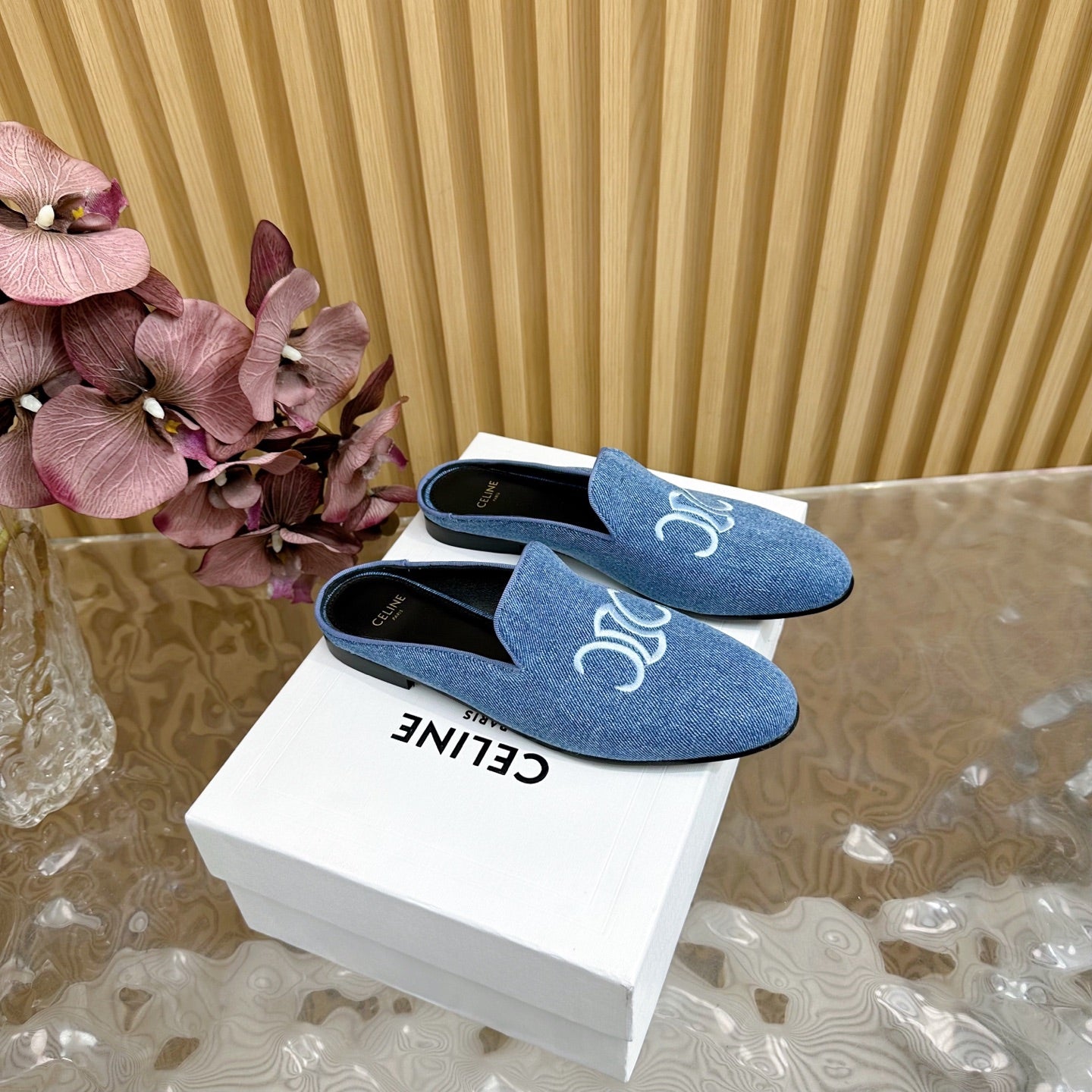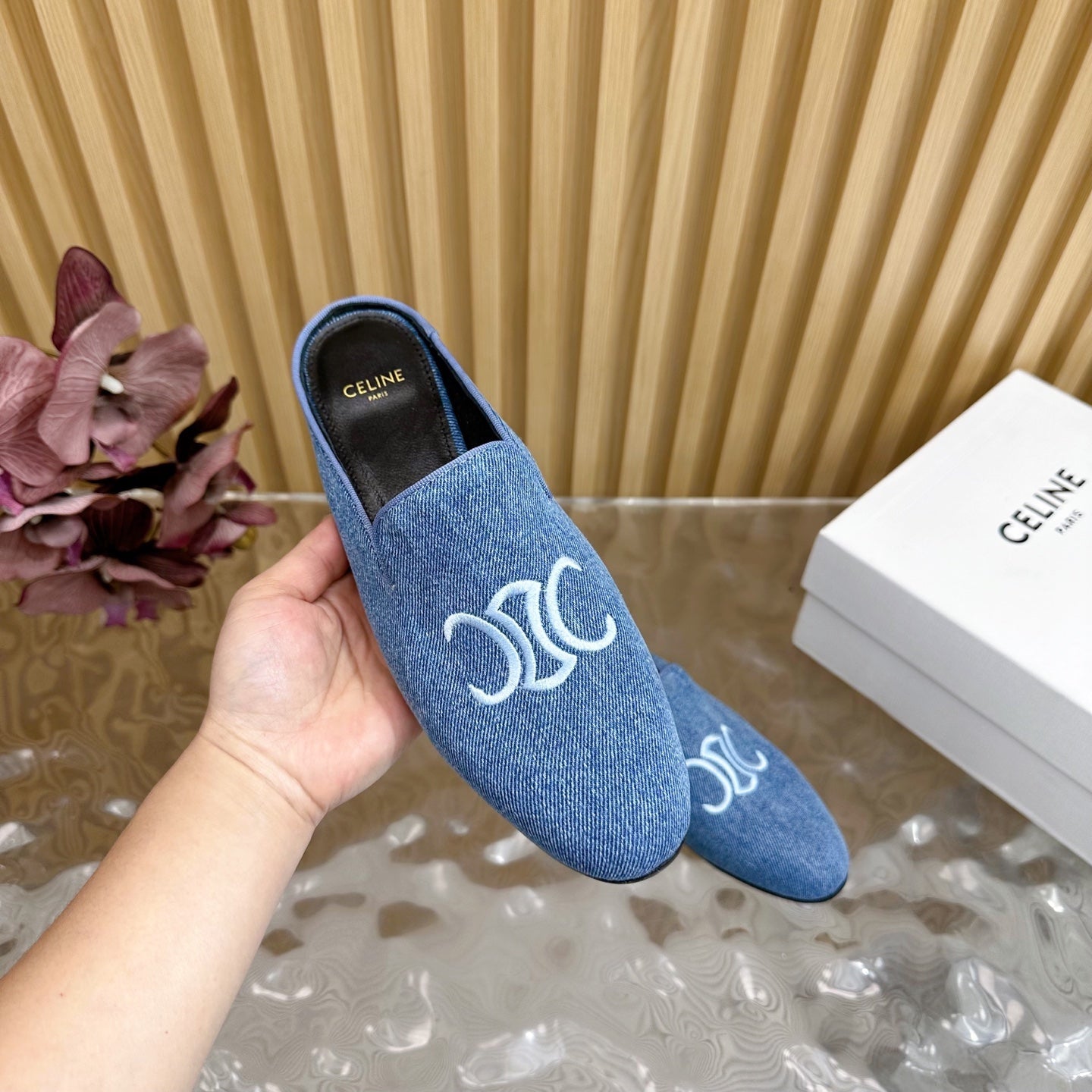 CELINE 25 Slippers Blue Denim 285915