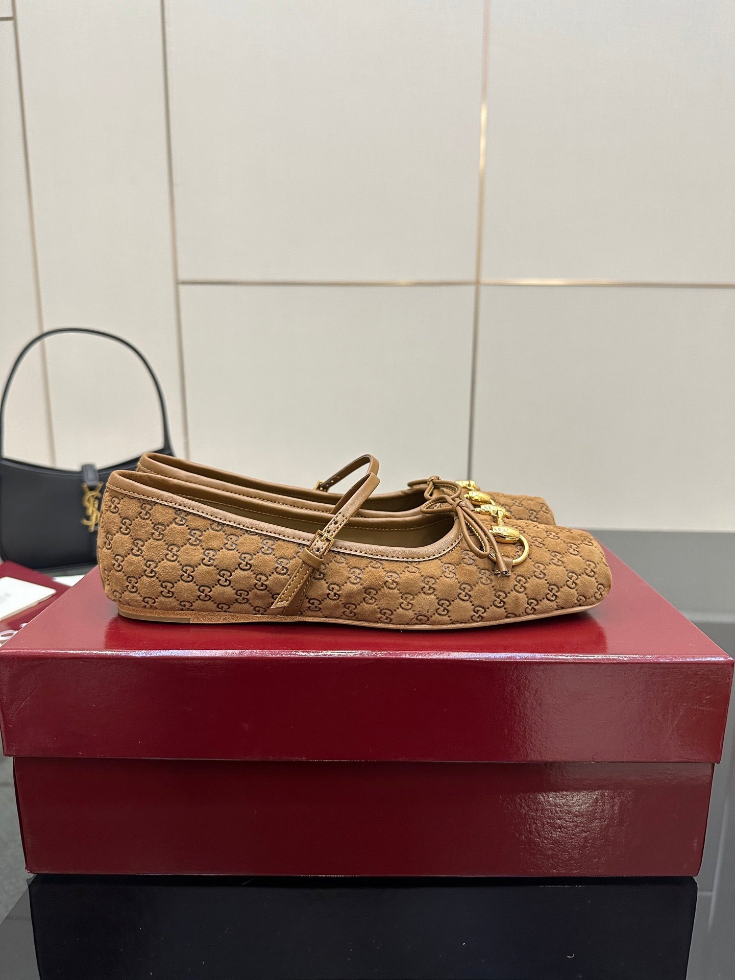 GC 25 Horsebit Ballet Flat Dark Brown Monogram Suede