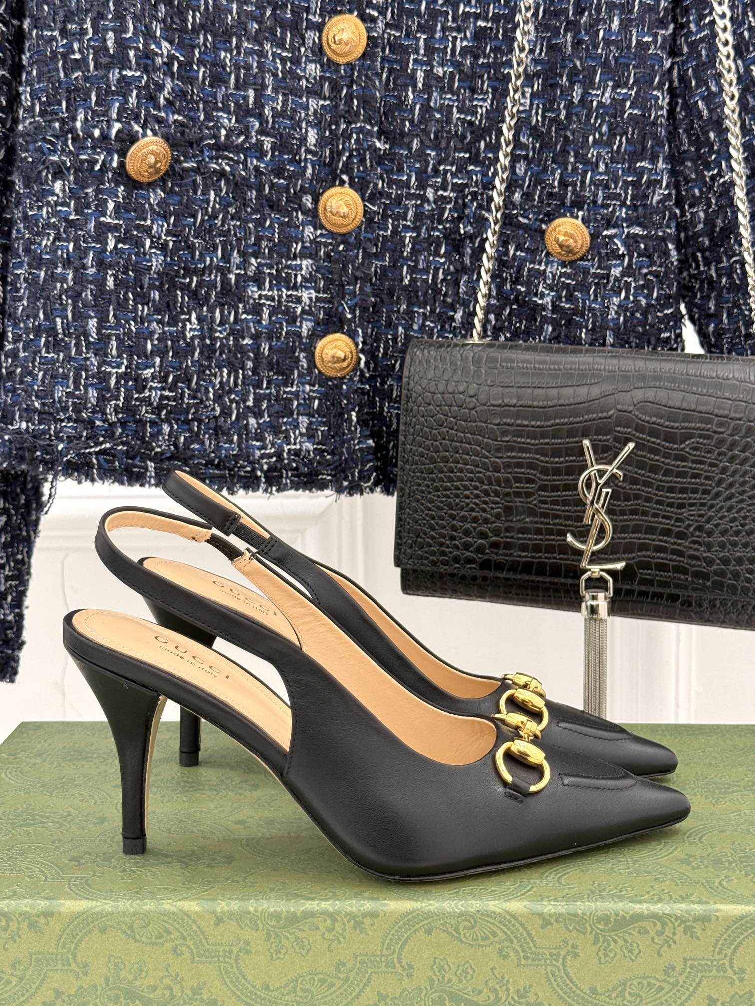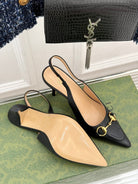 GG Horsebit Slingback 85MM Black Leather Point Toe