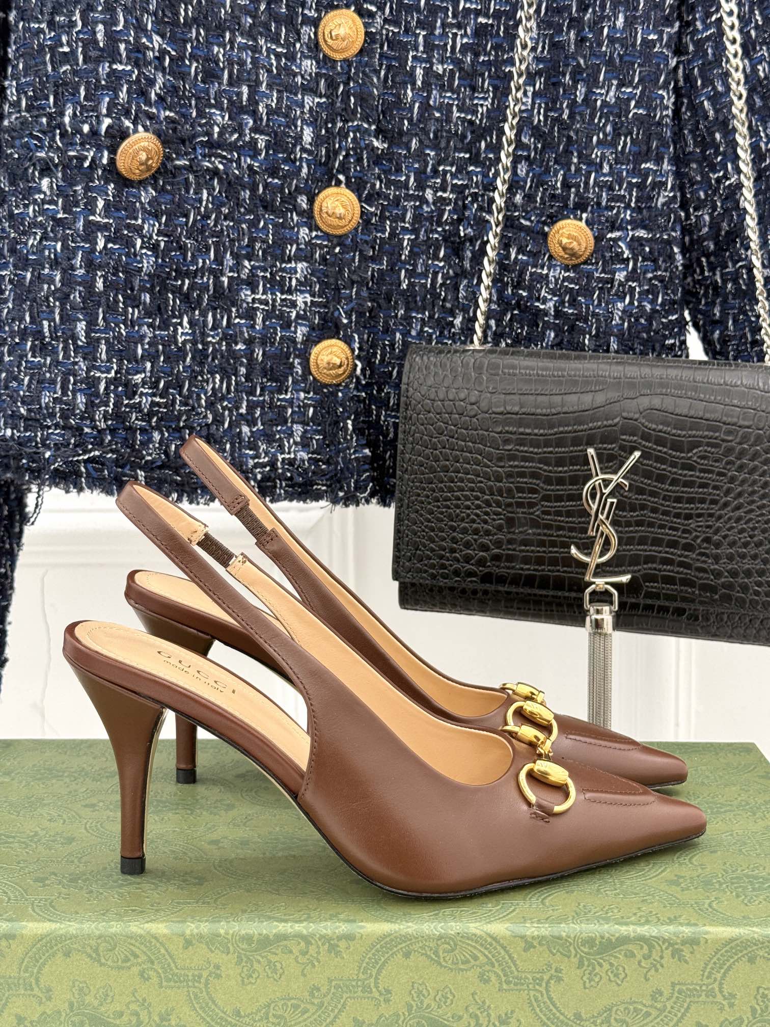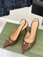 GG Horsebit Slingback 85MM Brown Leather Point Toe