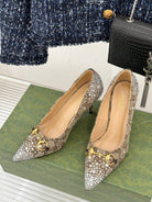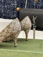 GG Pump 85 Beige Ebony Canvas Crystal-Embellished