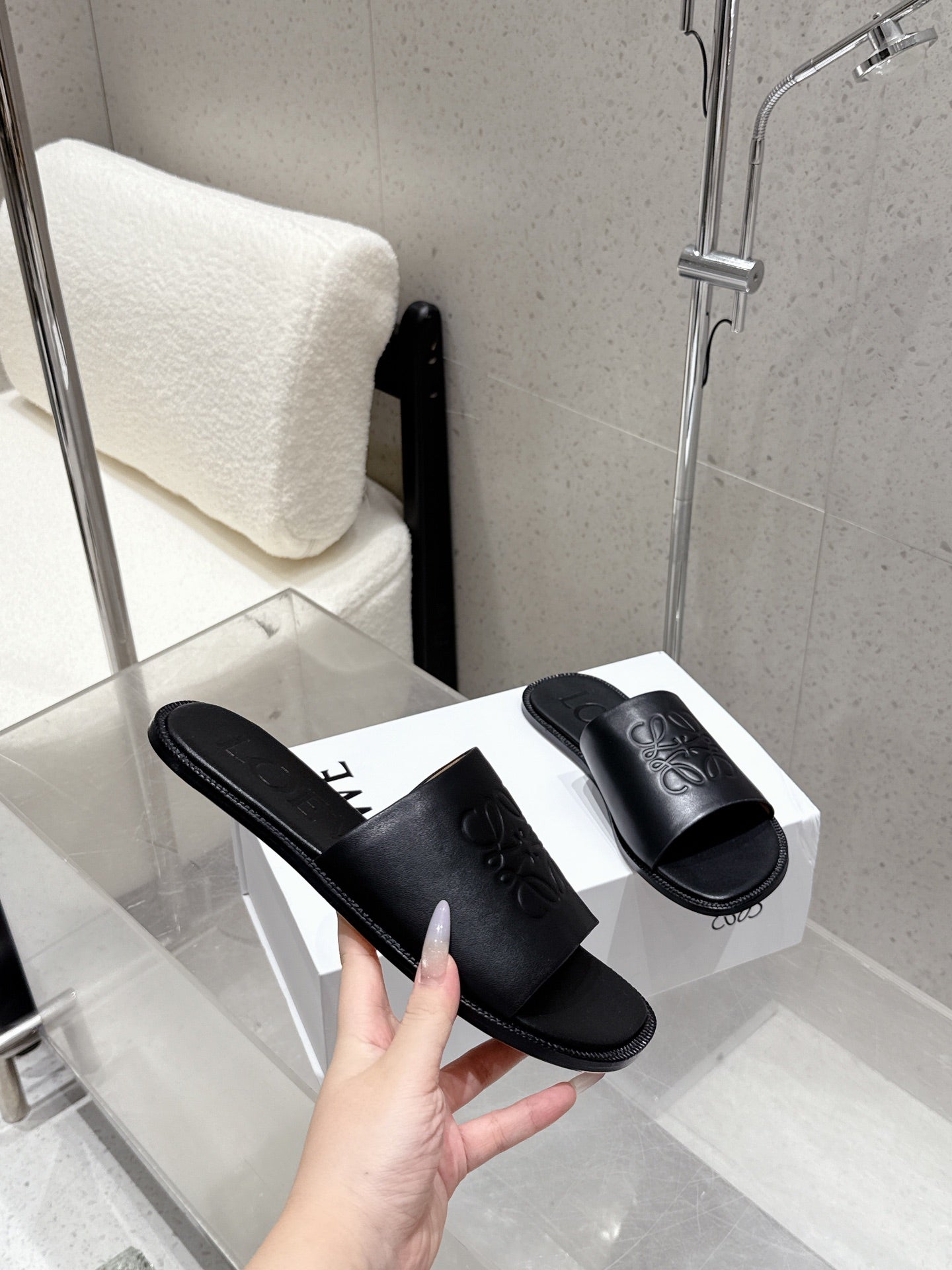 Loewe 25 flat slippers black calfskin
