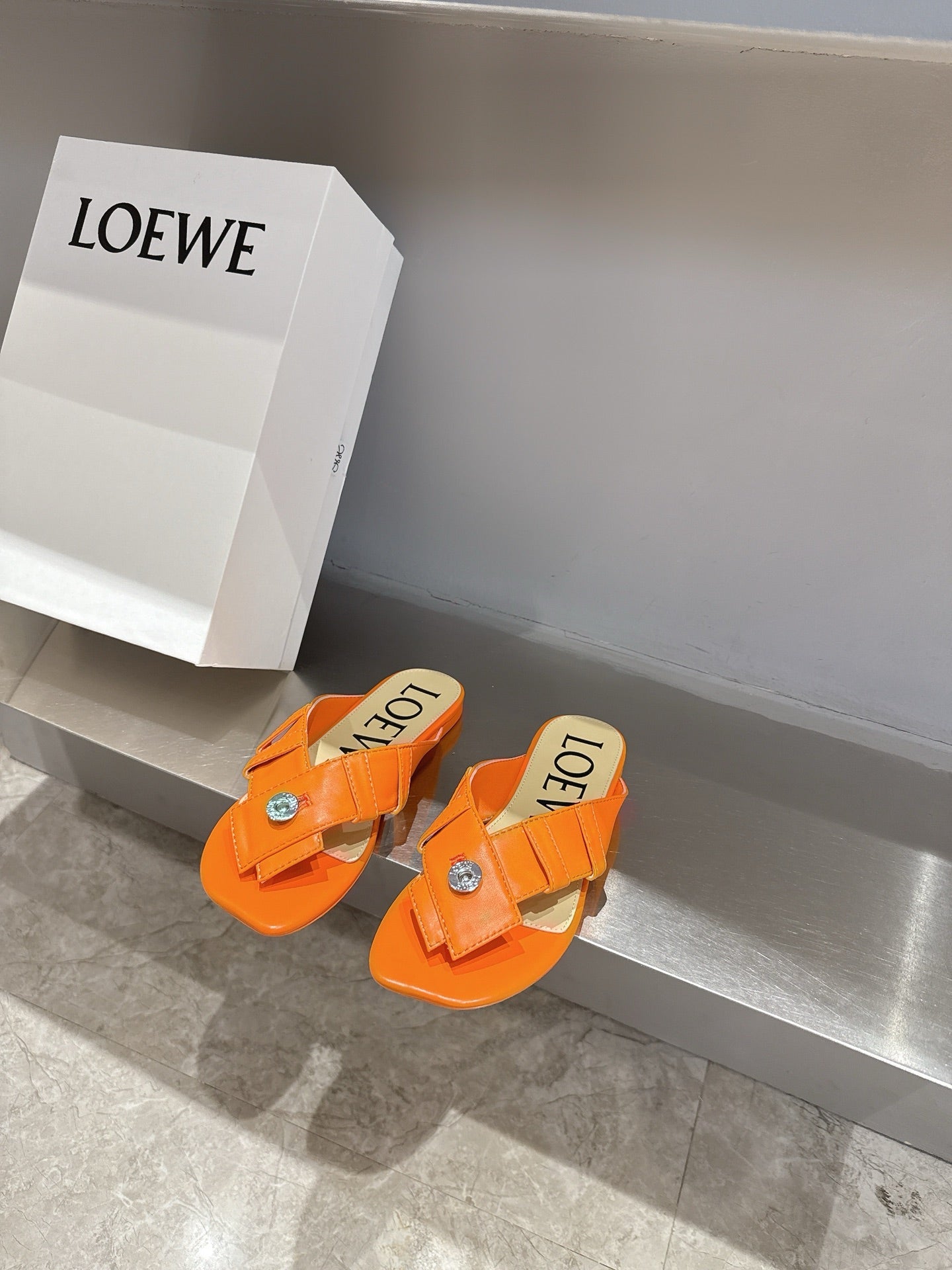 Loewe 25 Toy Panta Toe Thong Orange Sheepskin 317258