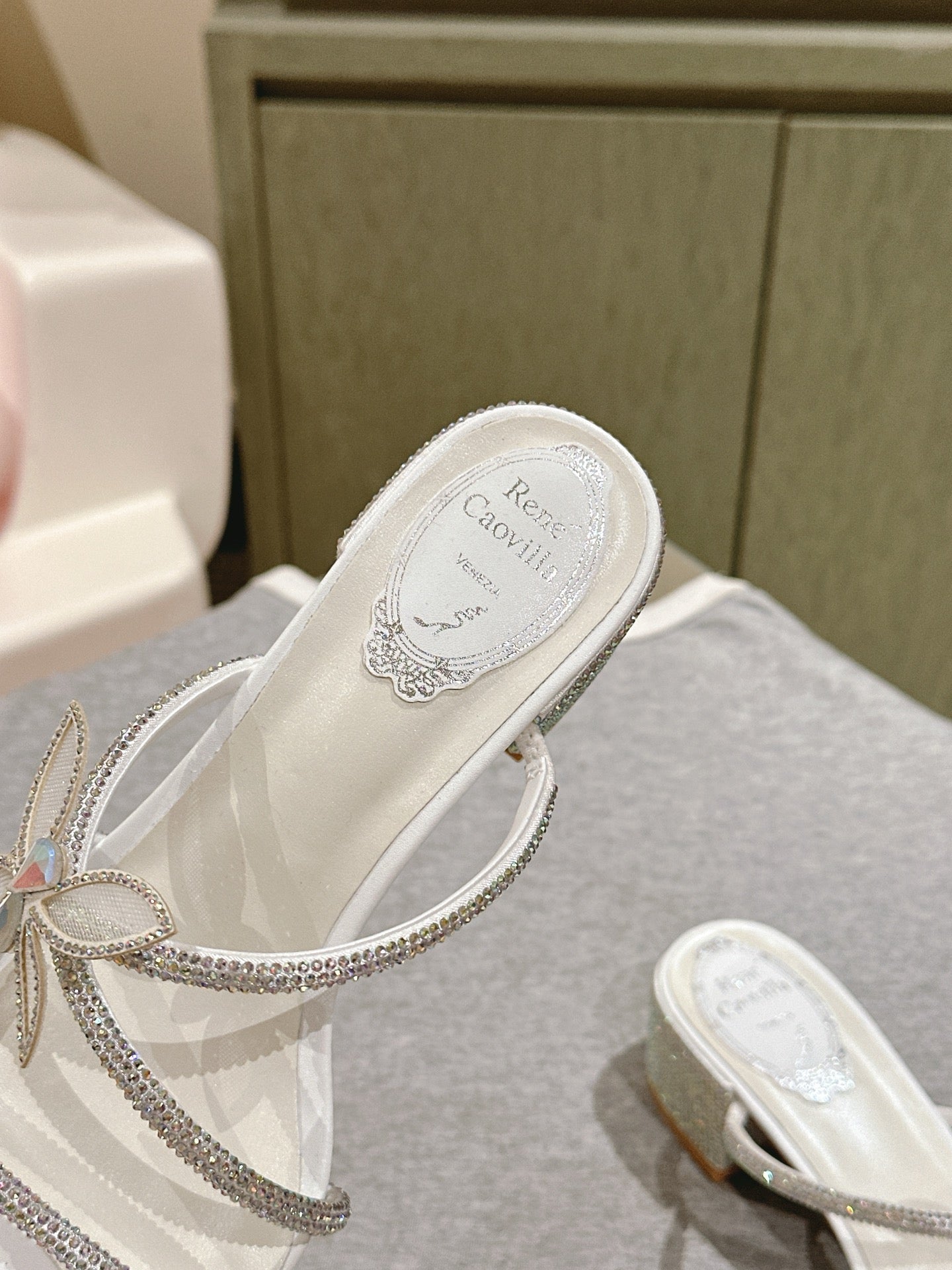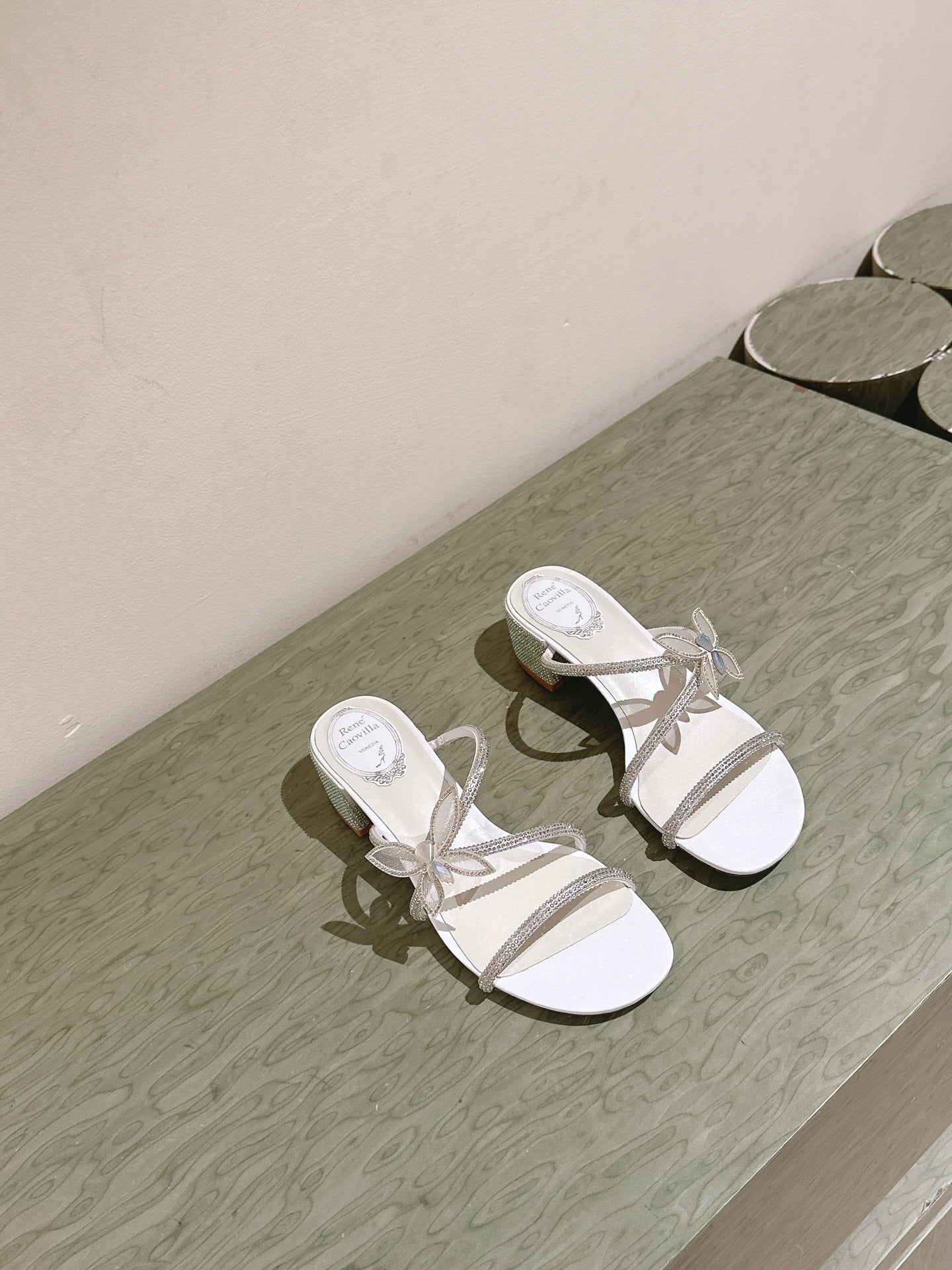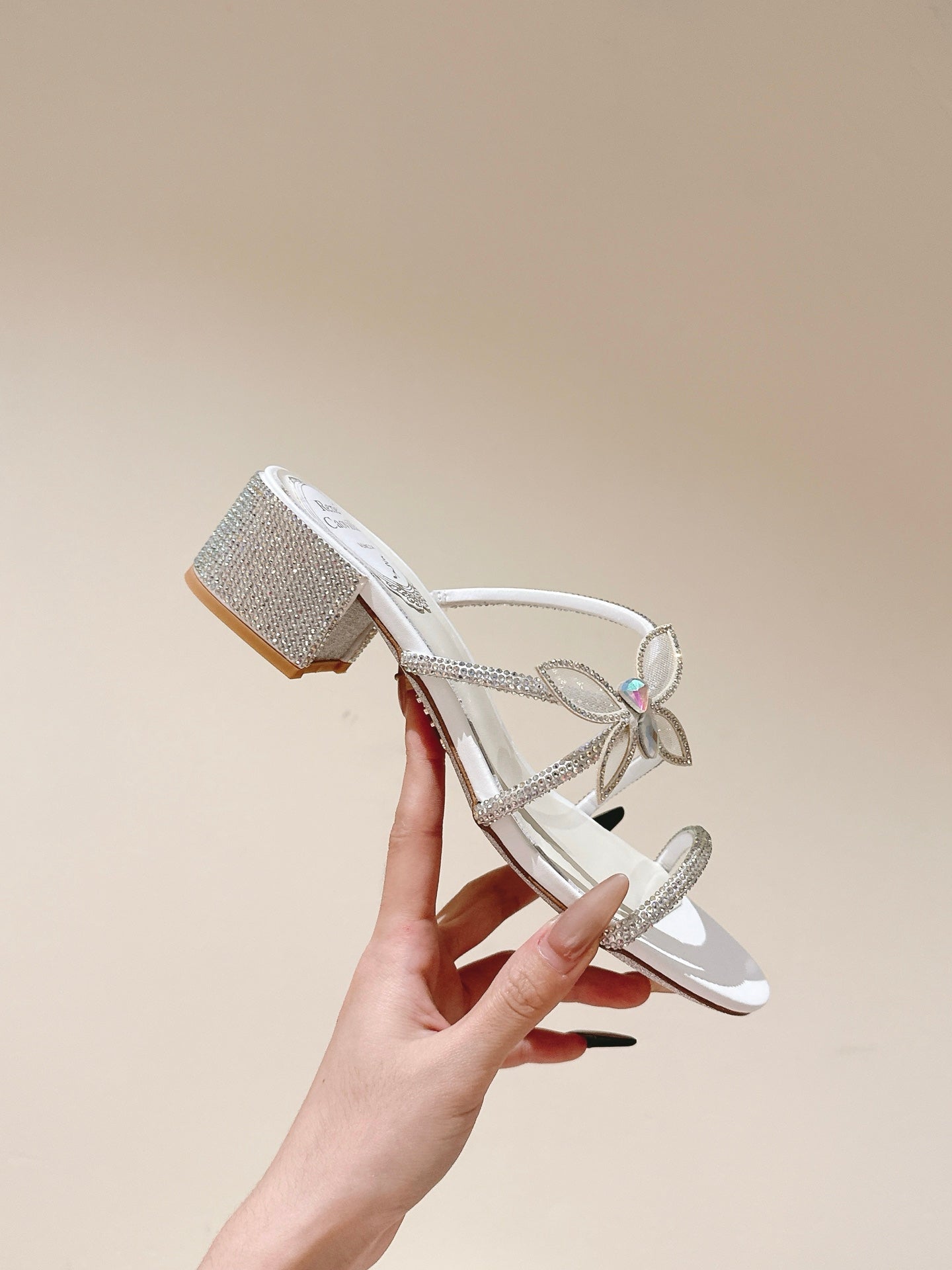 RC 25C Butterfly Diamond Sandals 4.5cm White Silk Rhinestones 268074