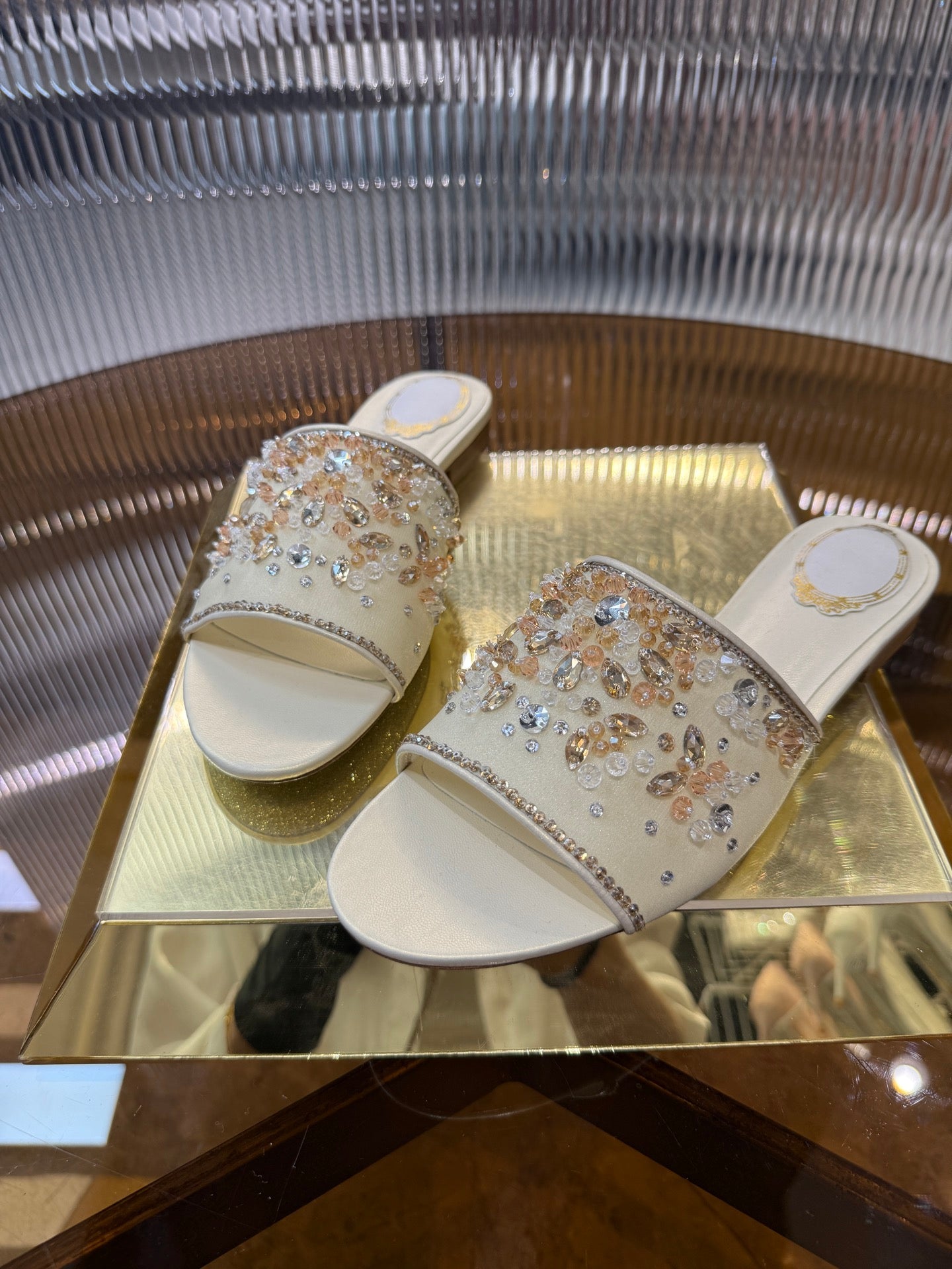 RC 25C Butterfly Flower Sandals Slippers Light Gold Sheepskin Rhinestone 275766
