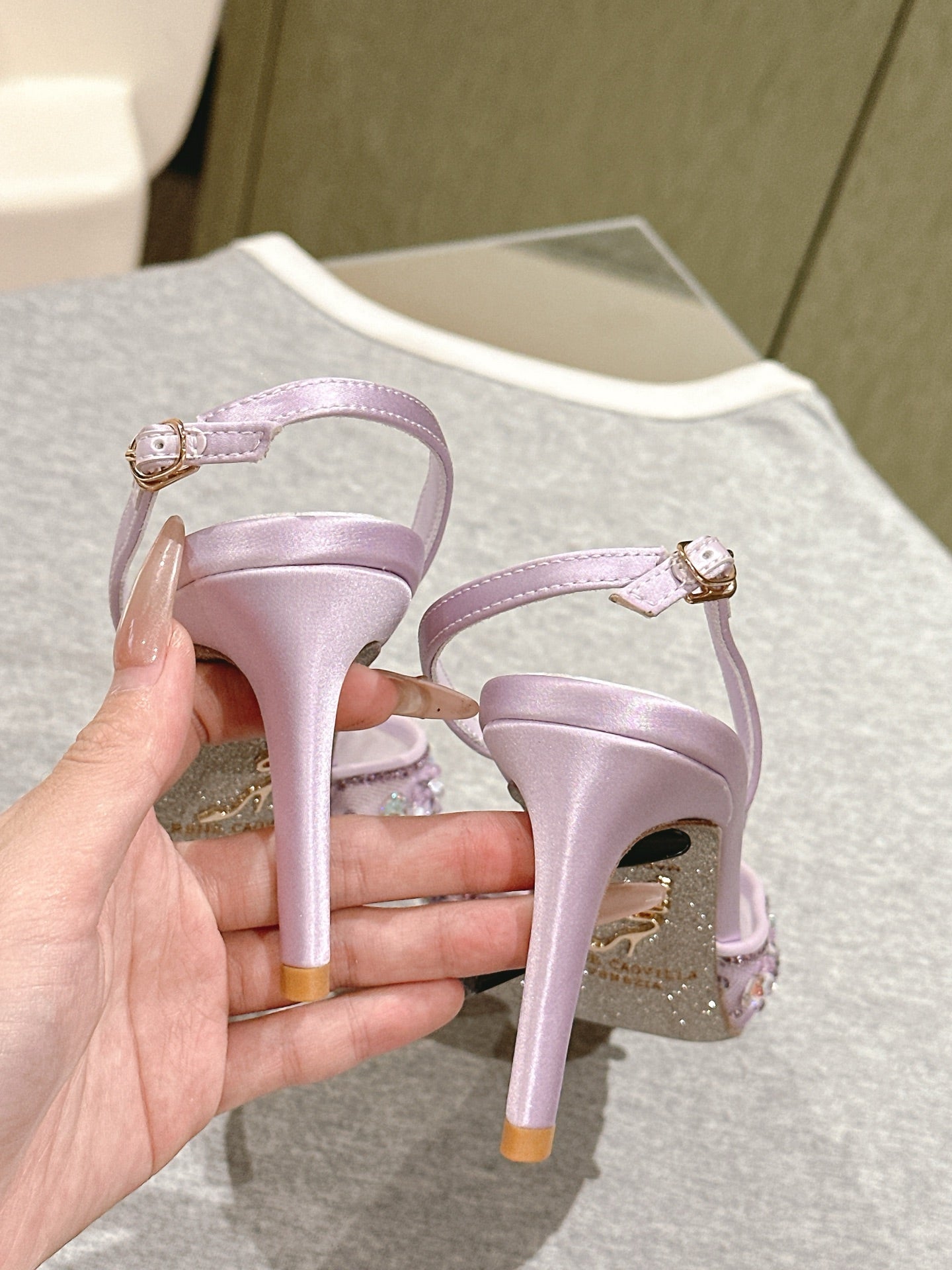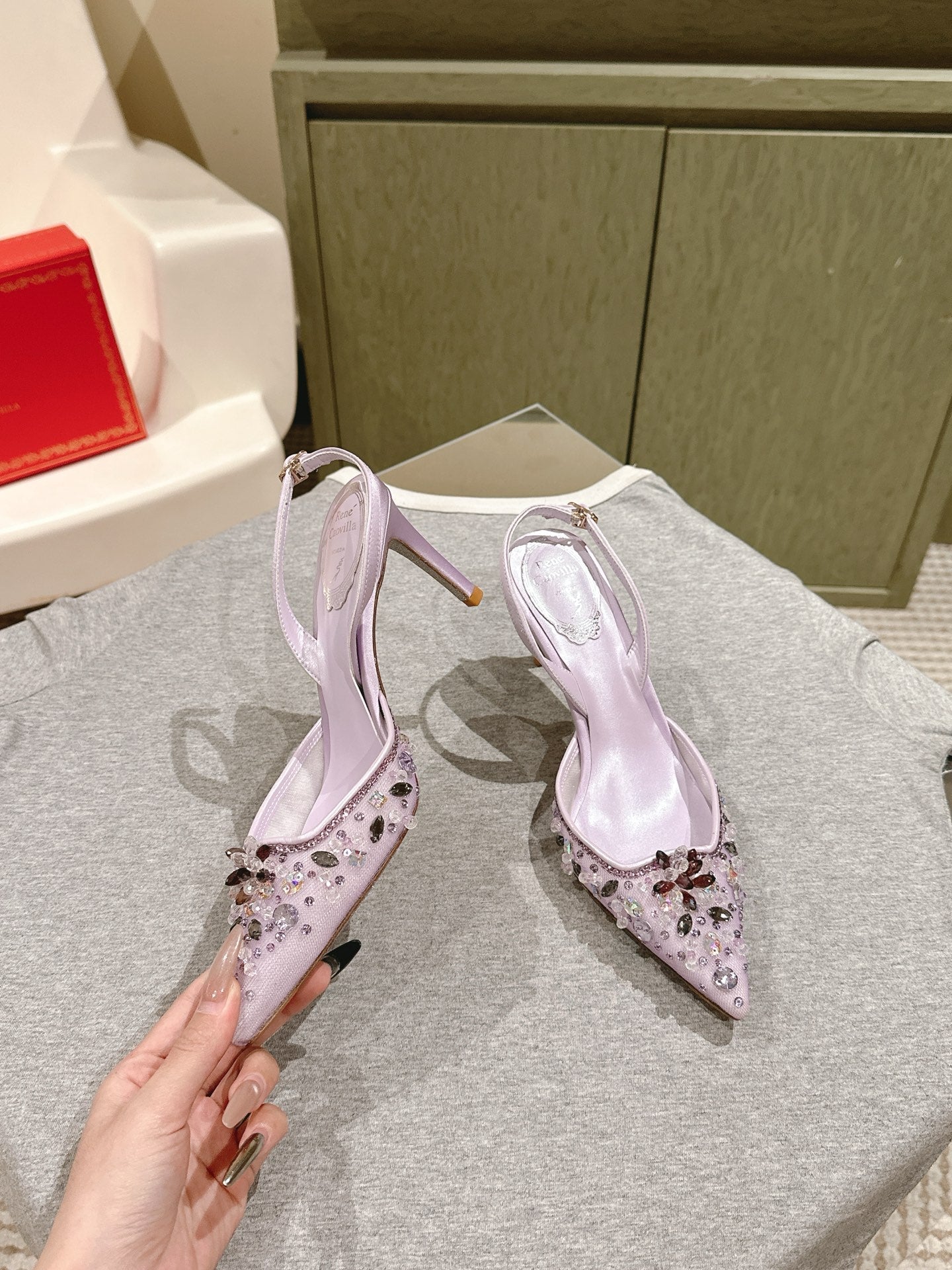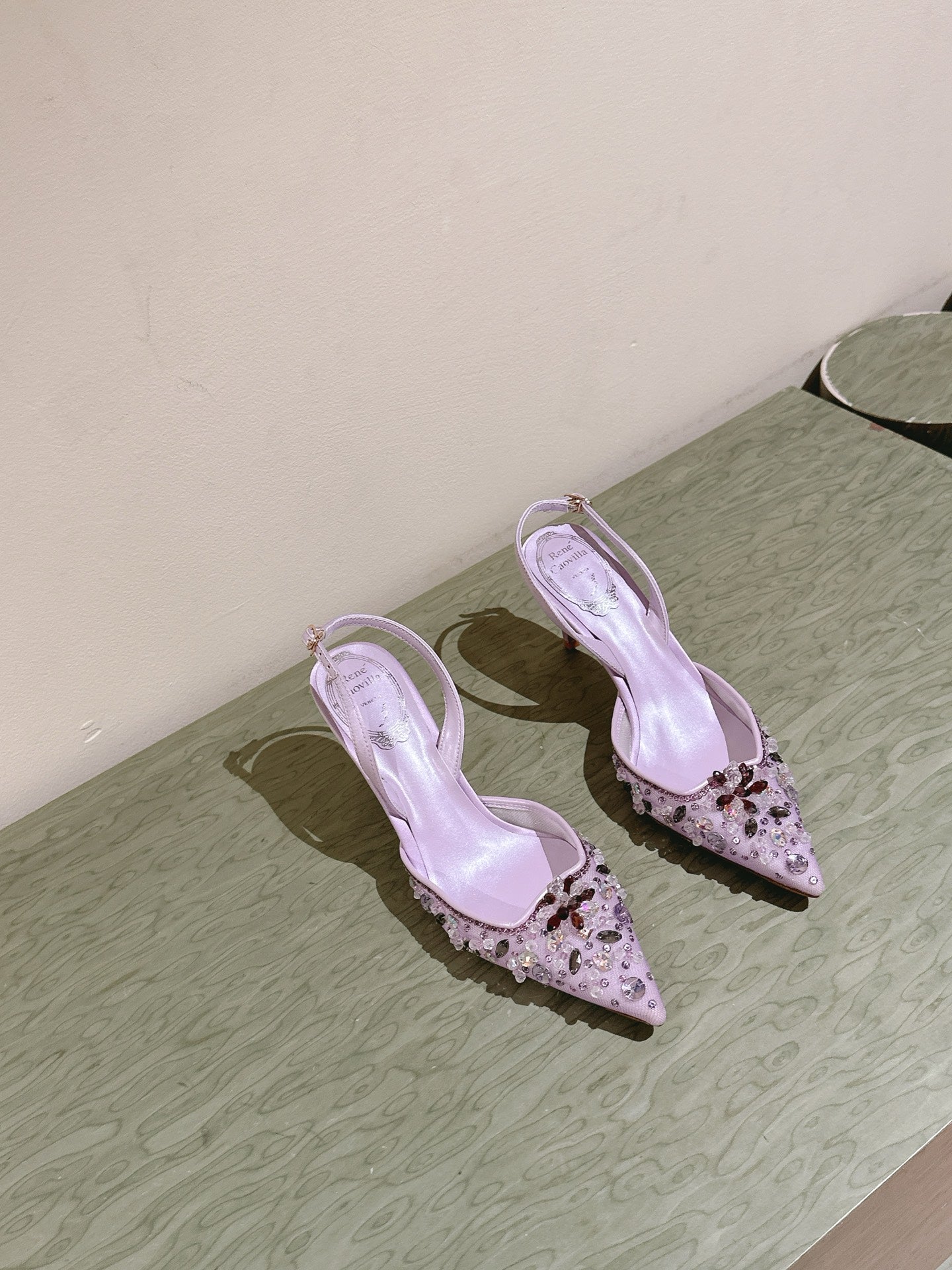 RC 25C Slingback Diamond High Heeled Purple Silk Rhinestones 268076