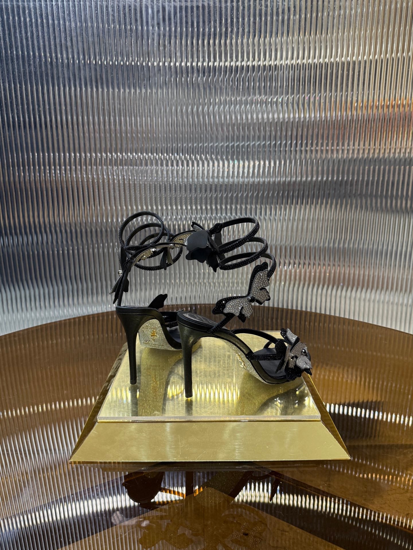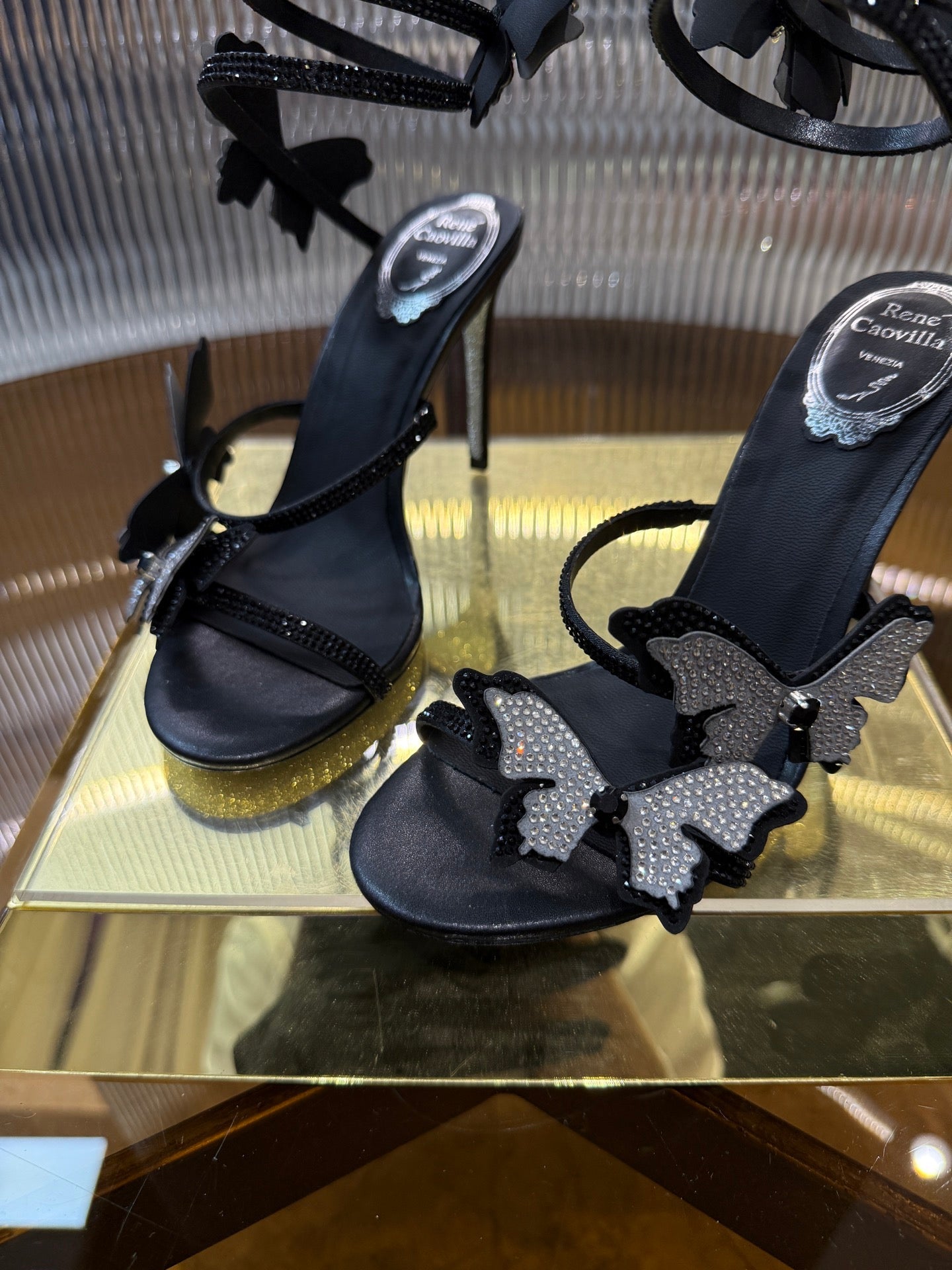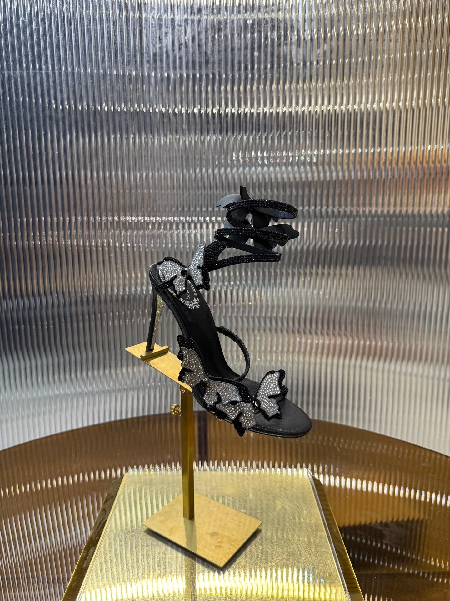 RC 25C Stiletto Sandals Black Silk Rhinestone 275776