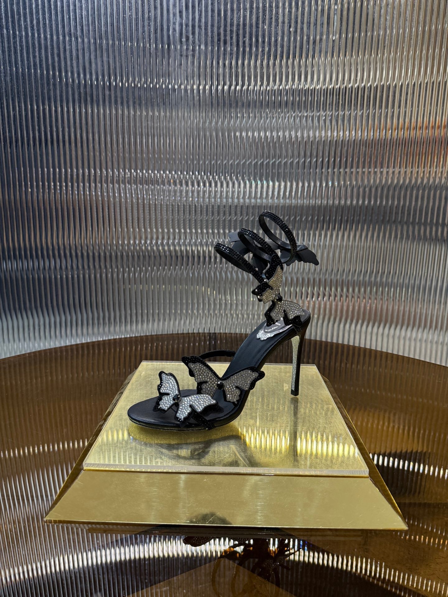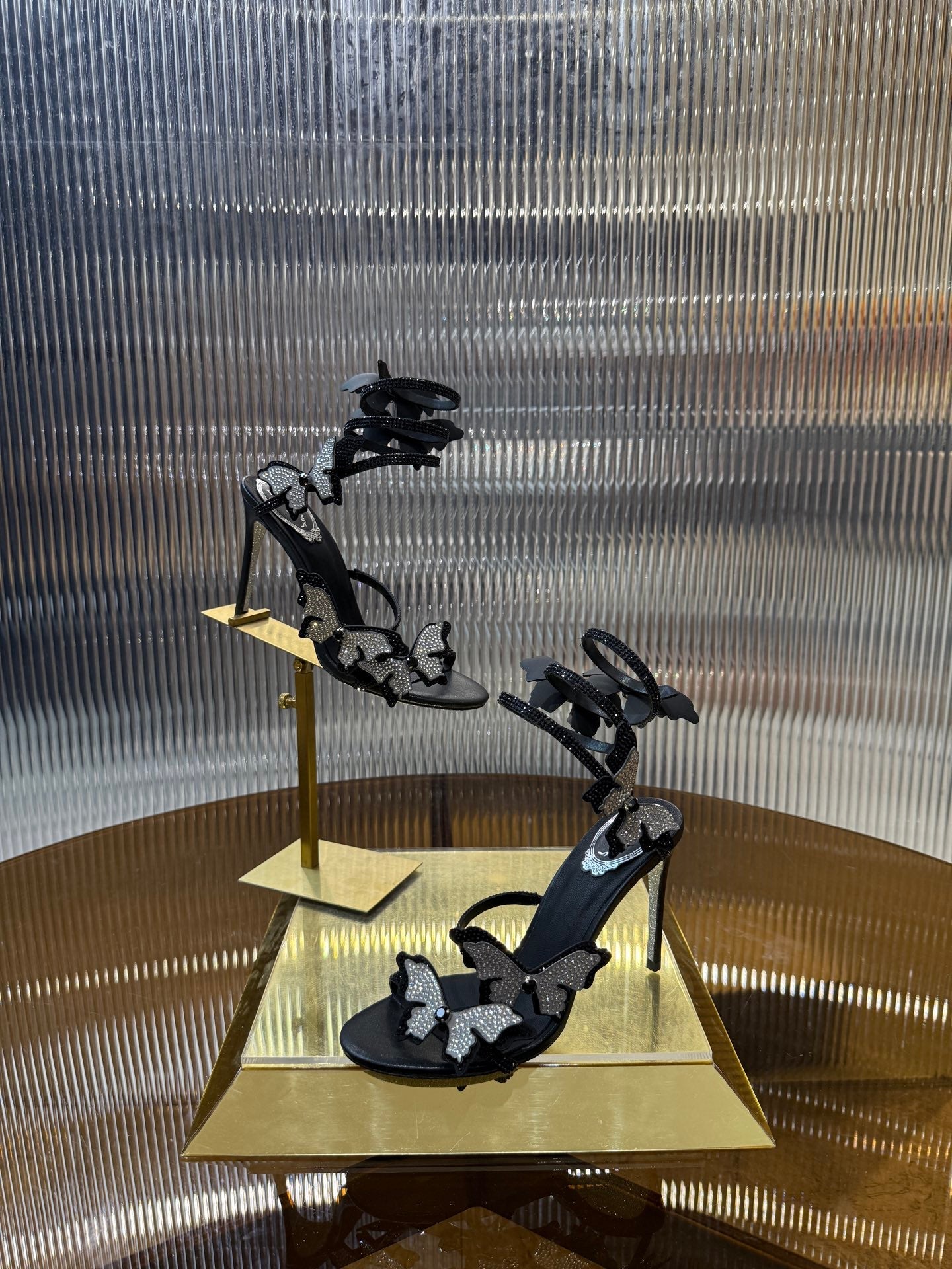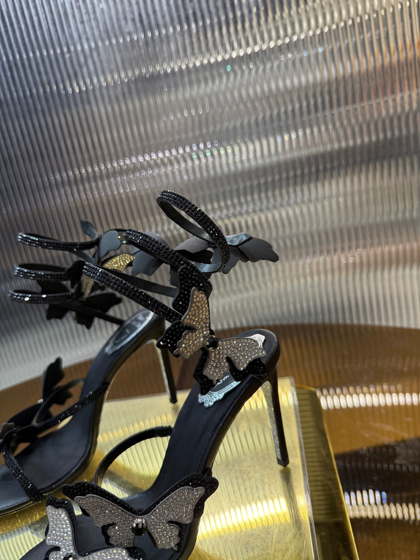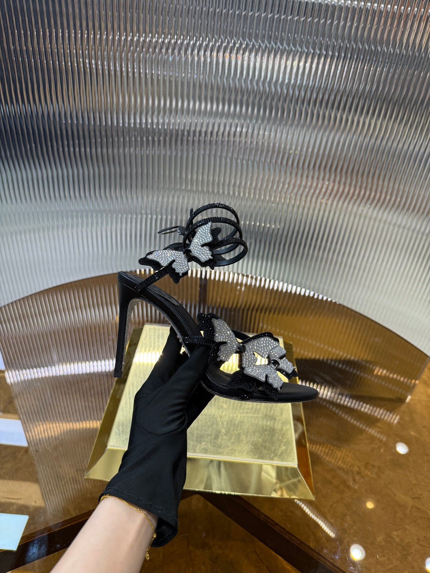 RC 25C Stiletto Sandals Black Silk Rhinestone 275776