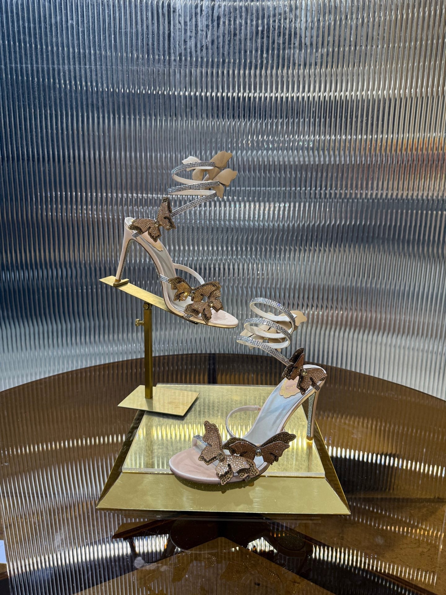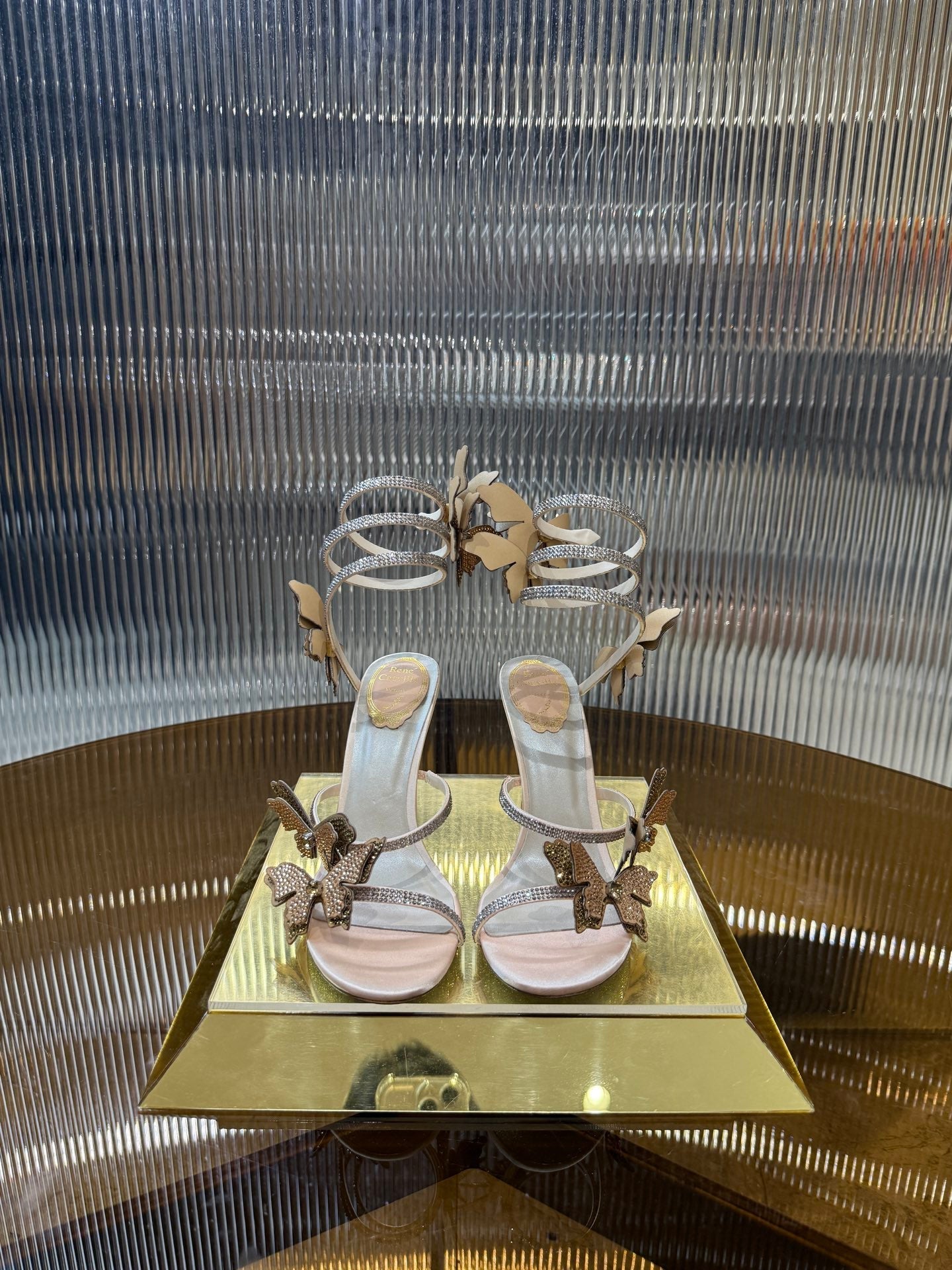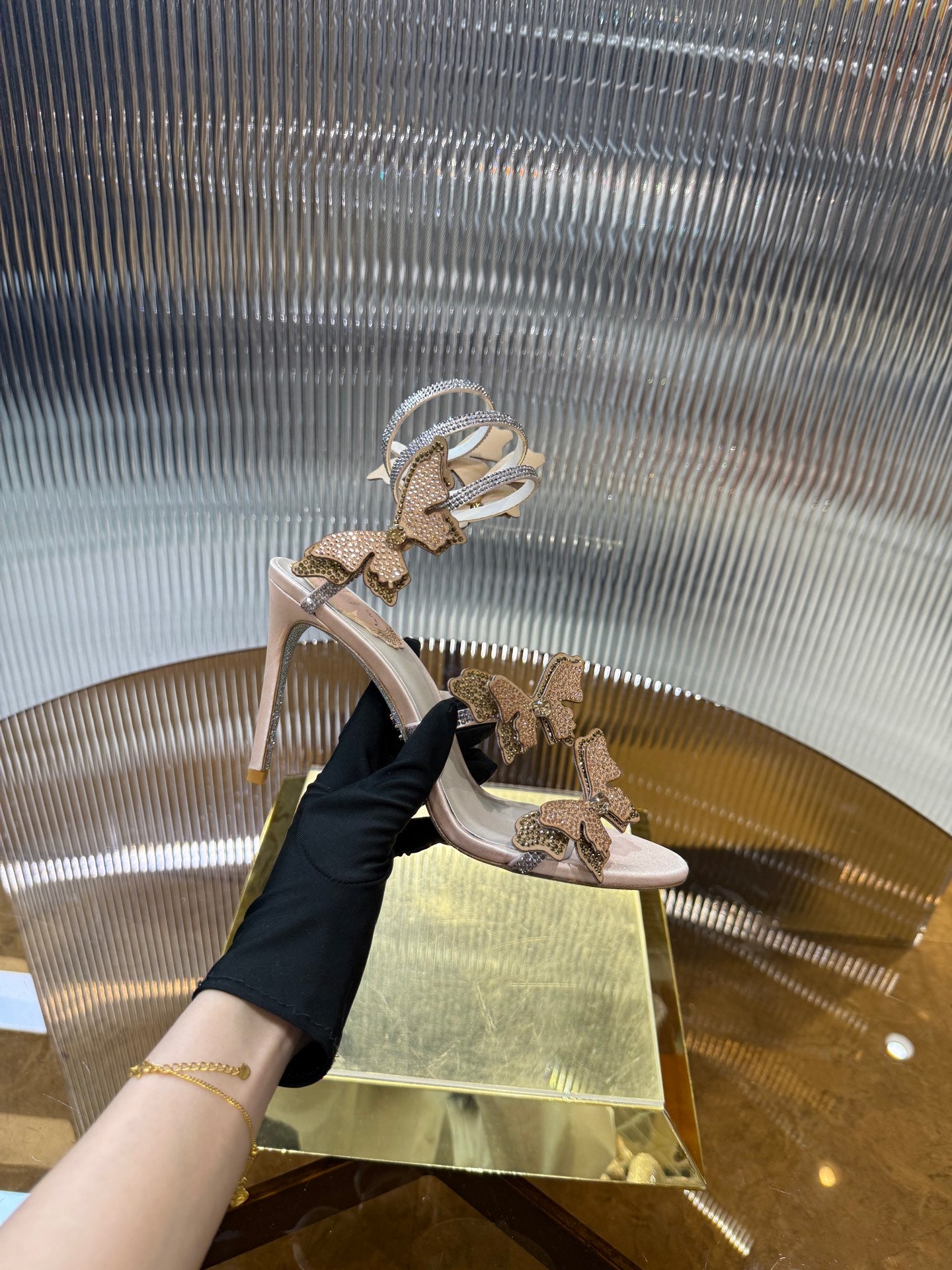RC 25C Stiletto Sandals Champagne Silk Rhinestone 275777