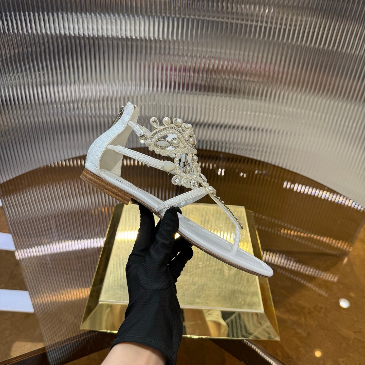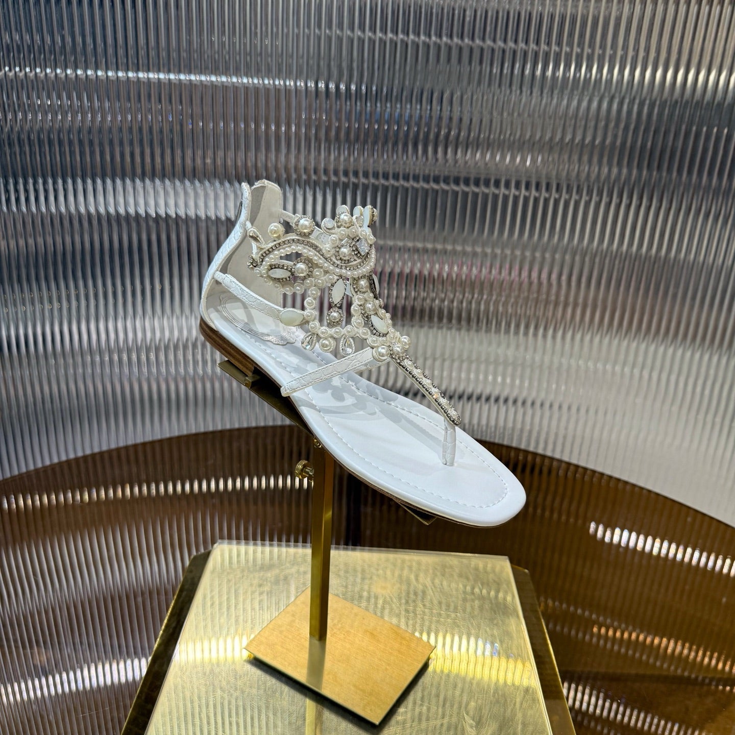 RC 25C Thong Diamond Sandals Pearl White Sheepskin Rhinestone 339504