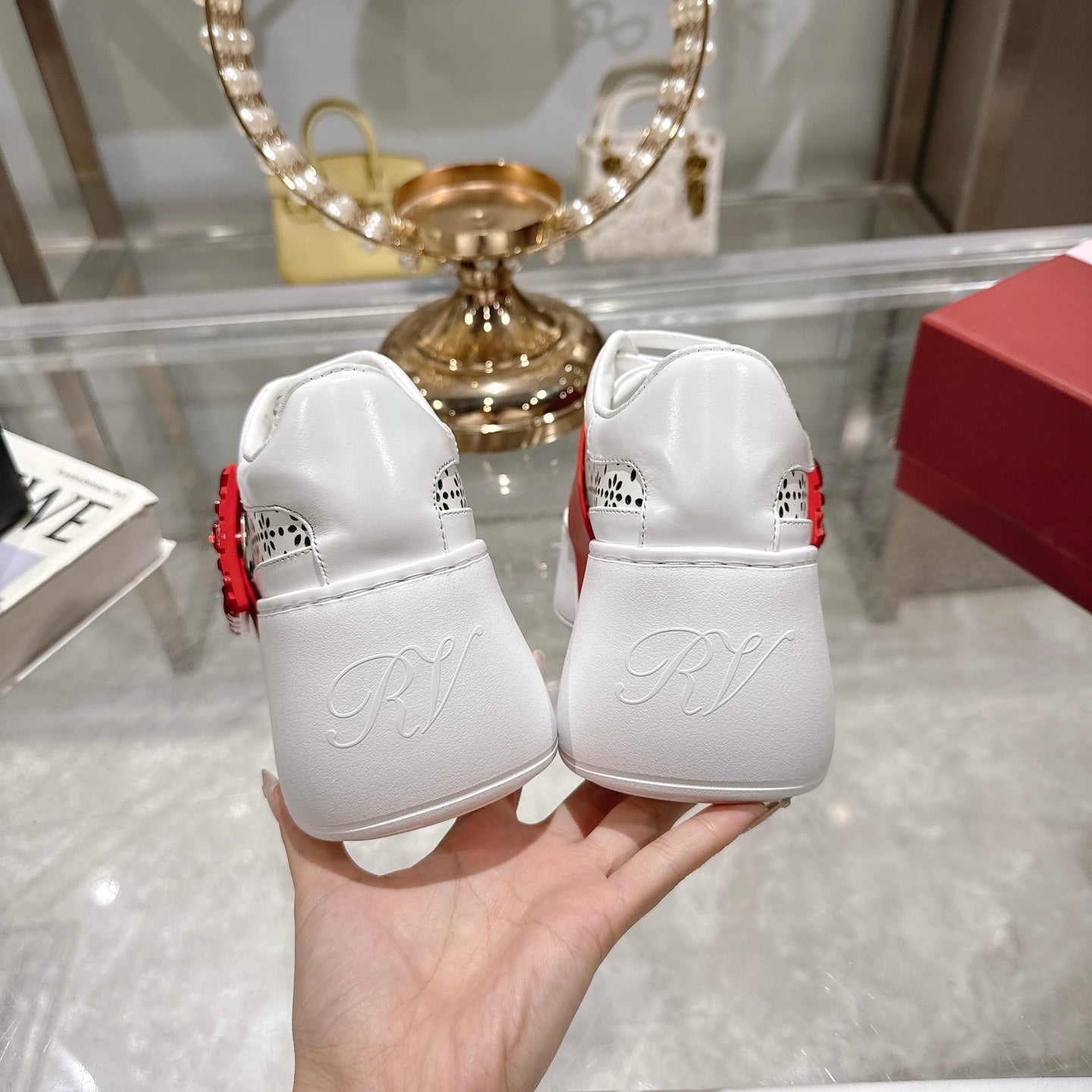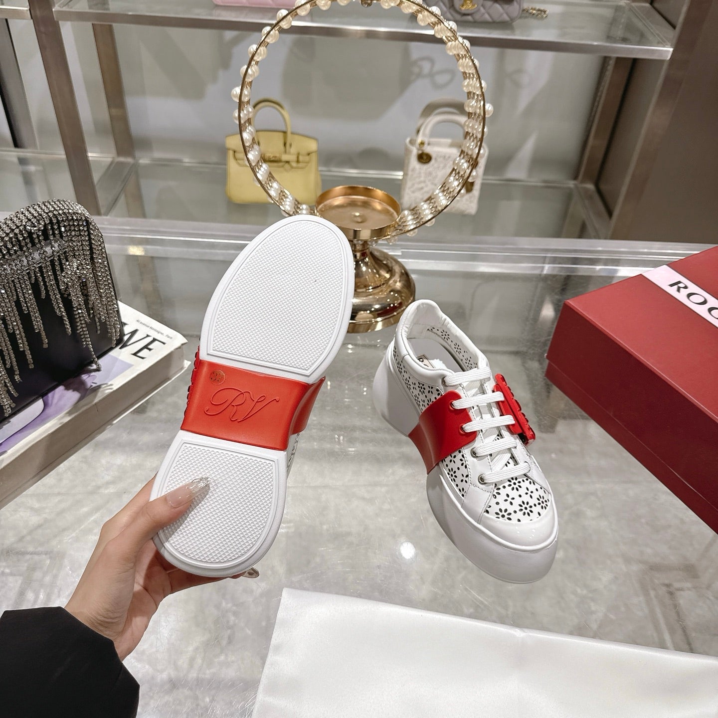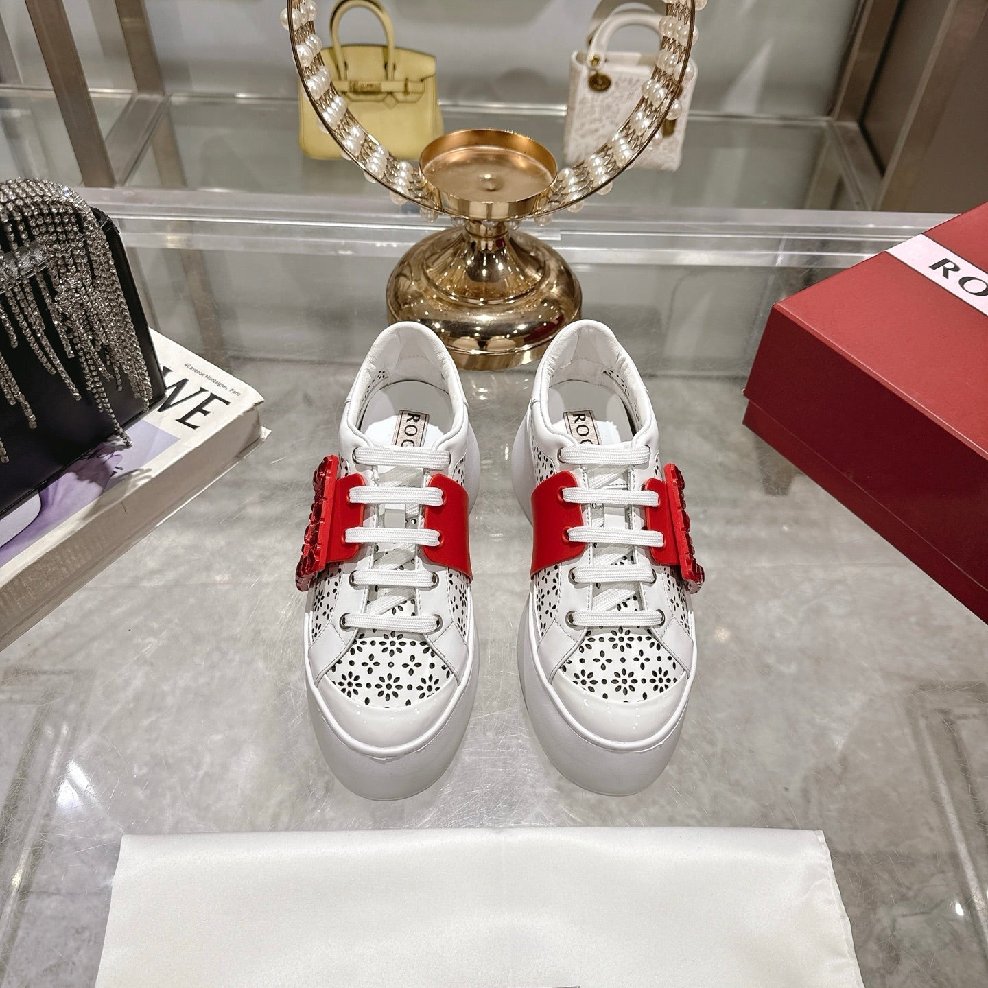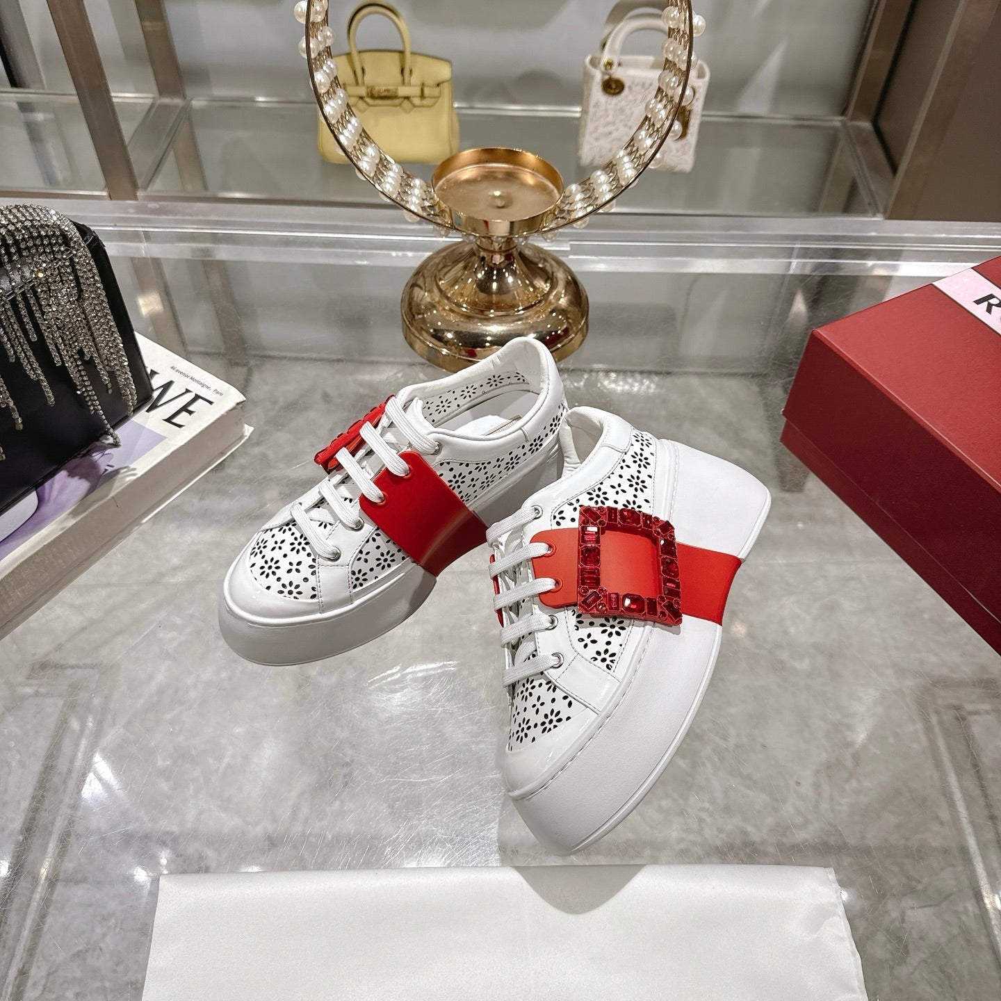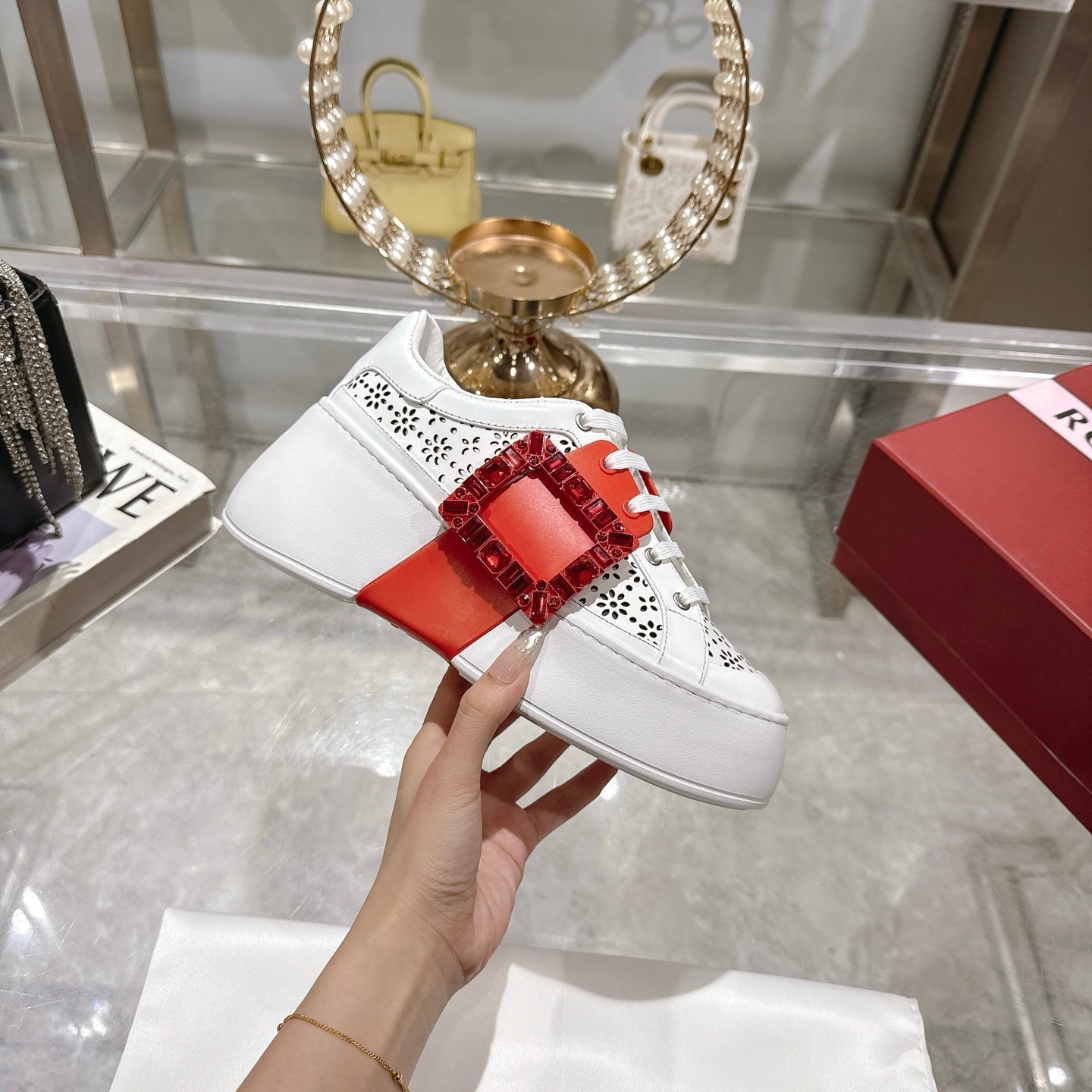 Viv 25 Square Buckle Platform White Red Cowhide 262979