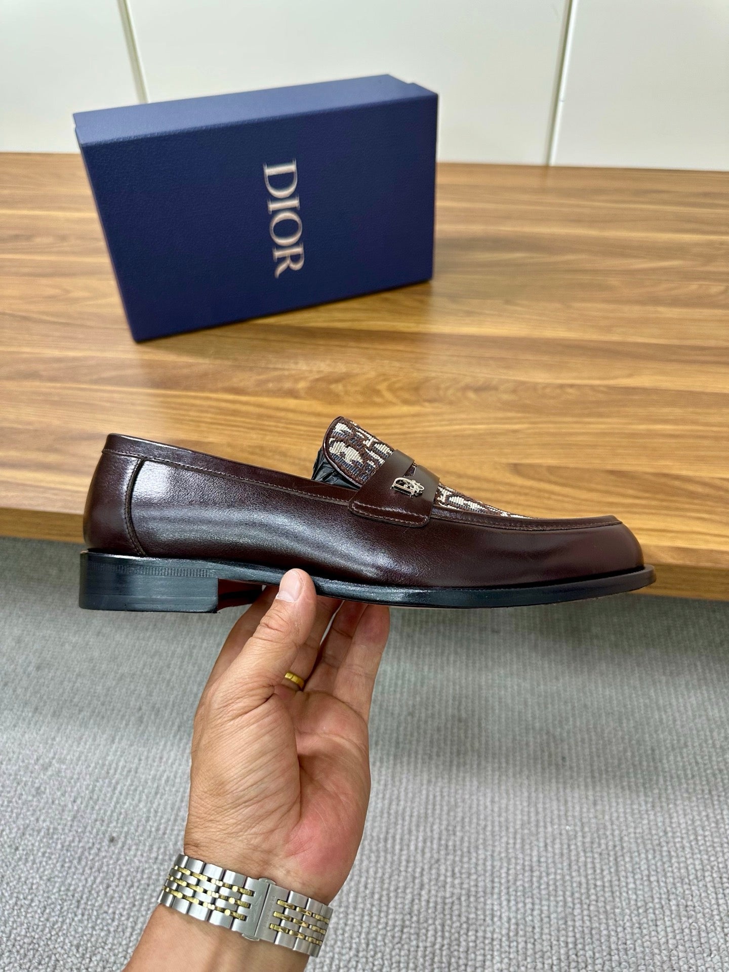 CD Timeless Loafer Brown Technical Fabric Cowhide 638621