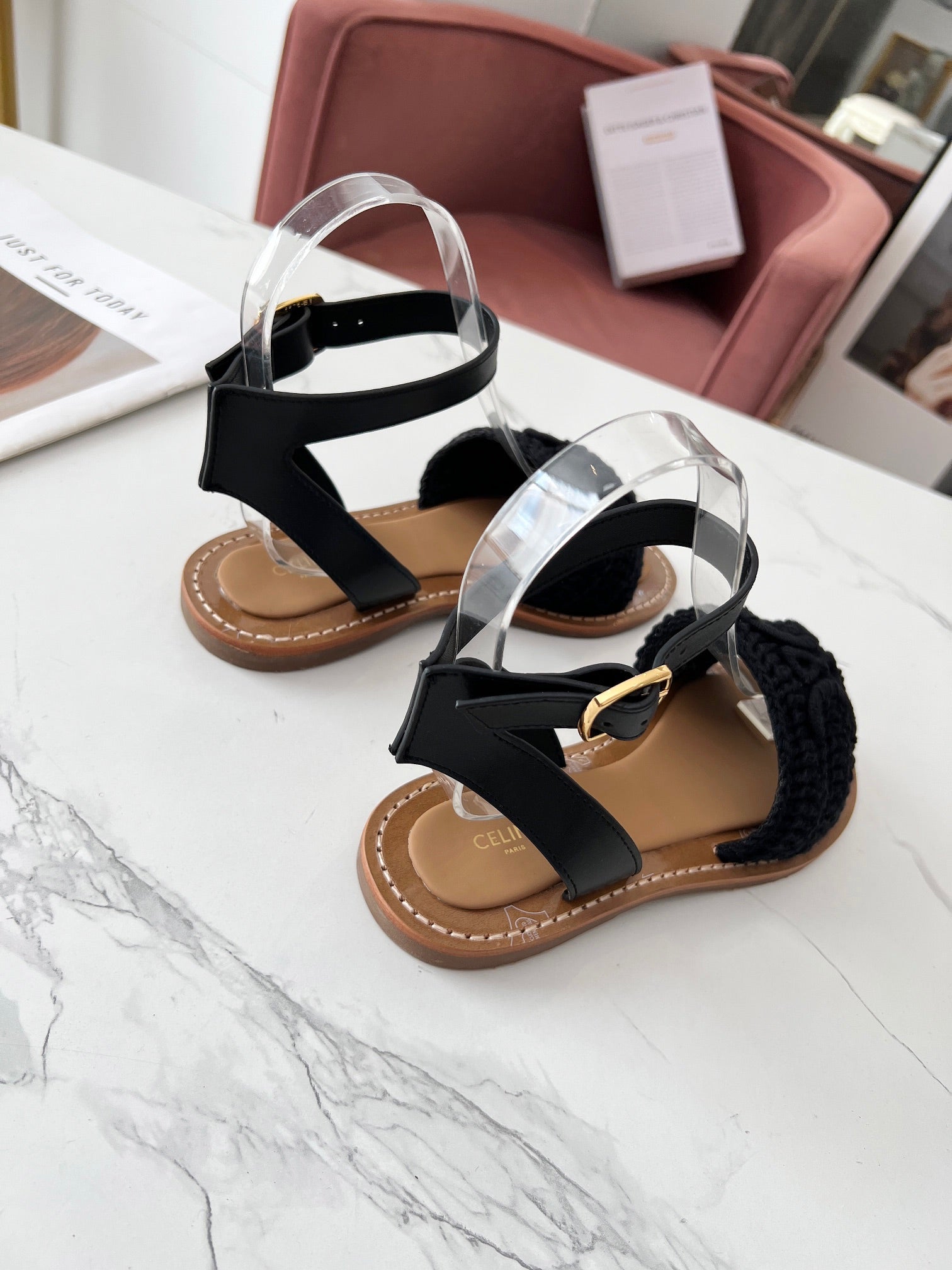 Celine 25C Lympia Sandal Black Fabric with Calfskin 238176