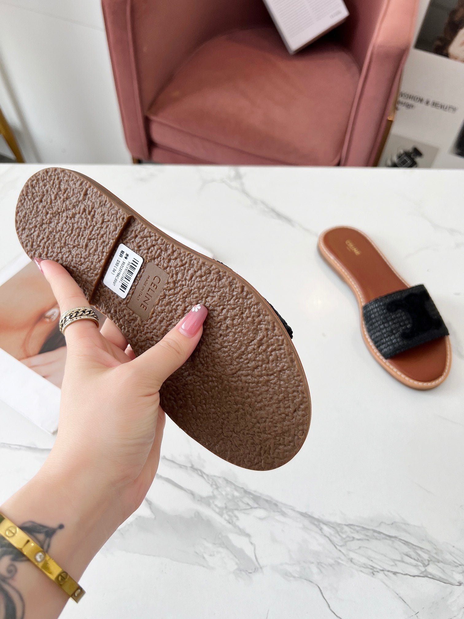Celine 25C Slippers Black Fabric with Calfskin 238155