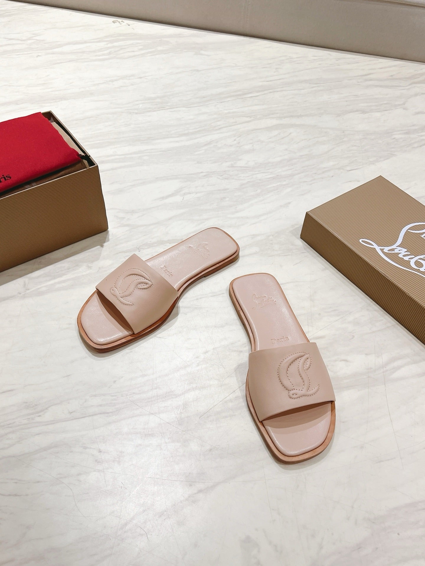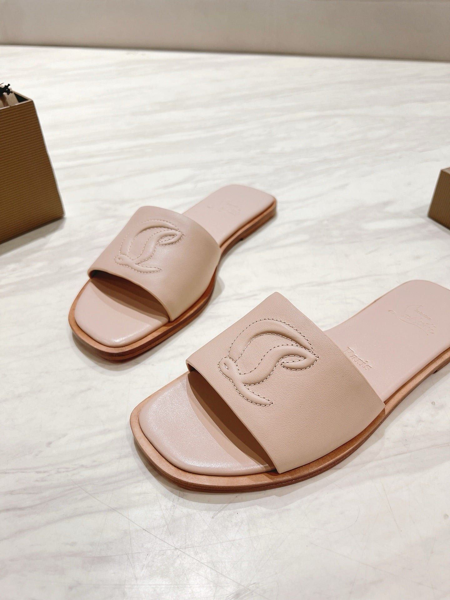 CL 25 Slippers Nude Top Layer High Gloss Calfskin 307500