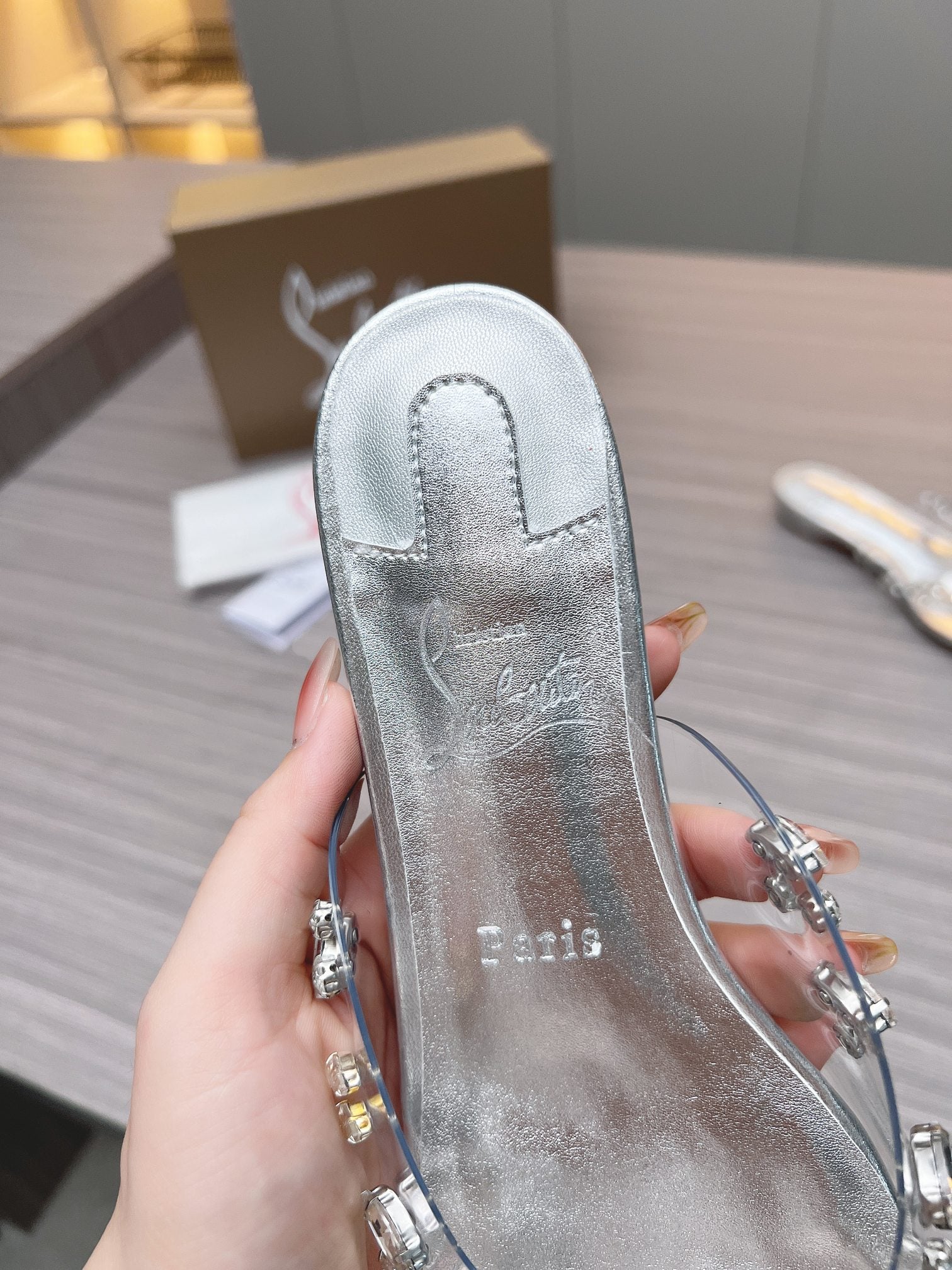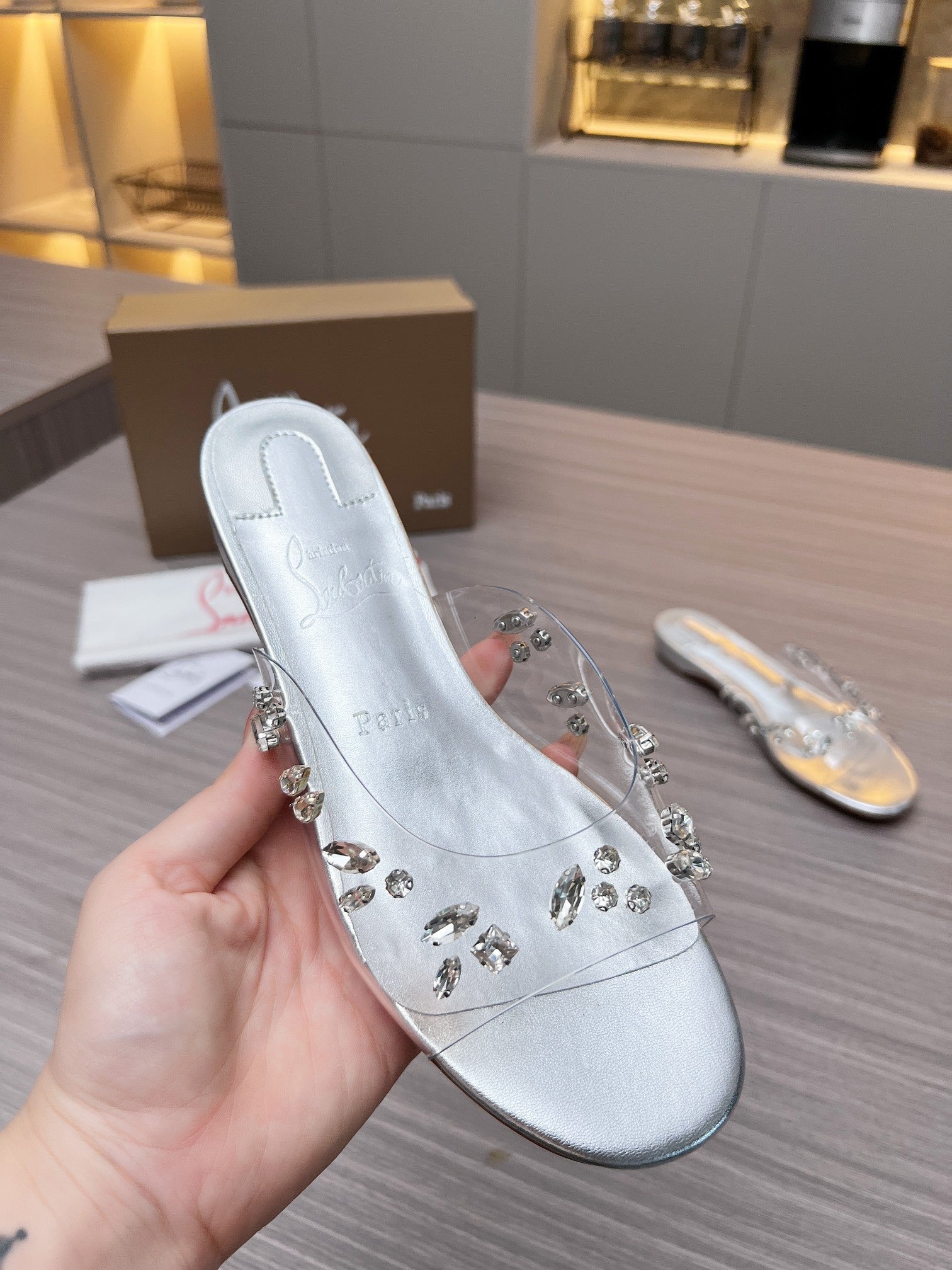 CL Slippers Silver PVC and Iridescent Nappa Leather 251047