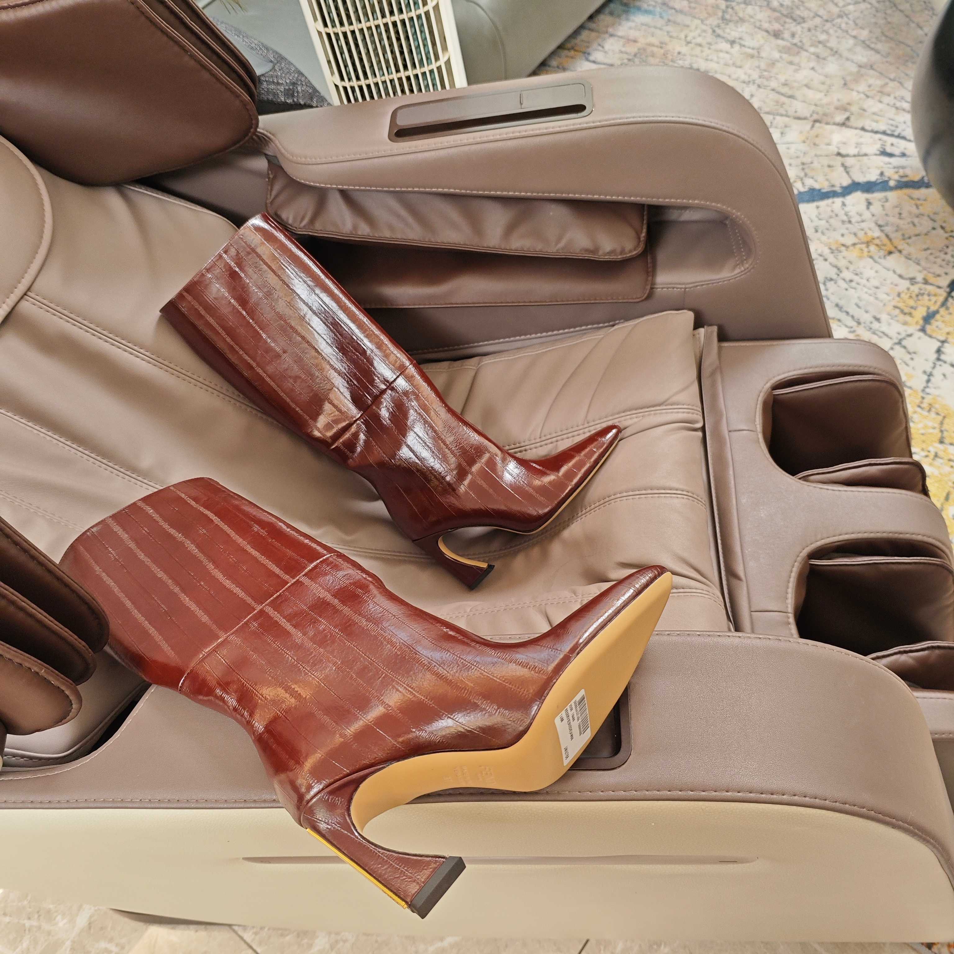 Fendi 25ss high-heeled boots reddish brown sheepskin 502719